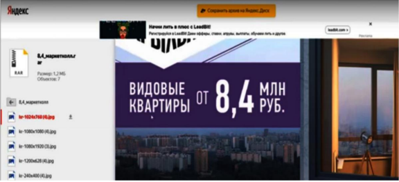 Здесь рекламодатель предлагает скачать с яндекс диска всю необходимую рекламную информацию (тексты, картинки, баннеры и т.д.) Вам остается только скачать эти материалы к себе на компьютер и выбрать понравившиеся материалы для составления объявлений. Также вы можете зайти на сайт рекламодателя и подобрать для своего объявления всю необходимую информацию на сайте.