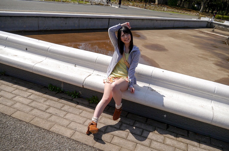 Дамочка показывает попу прямо в саду
