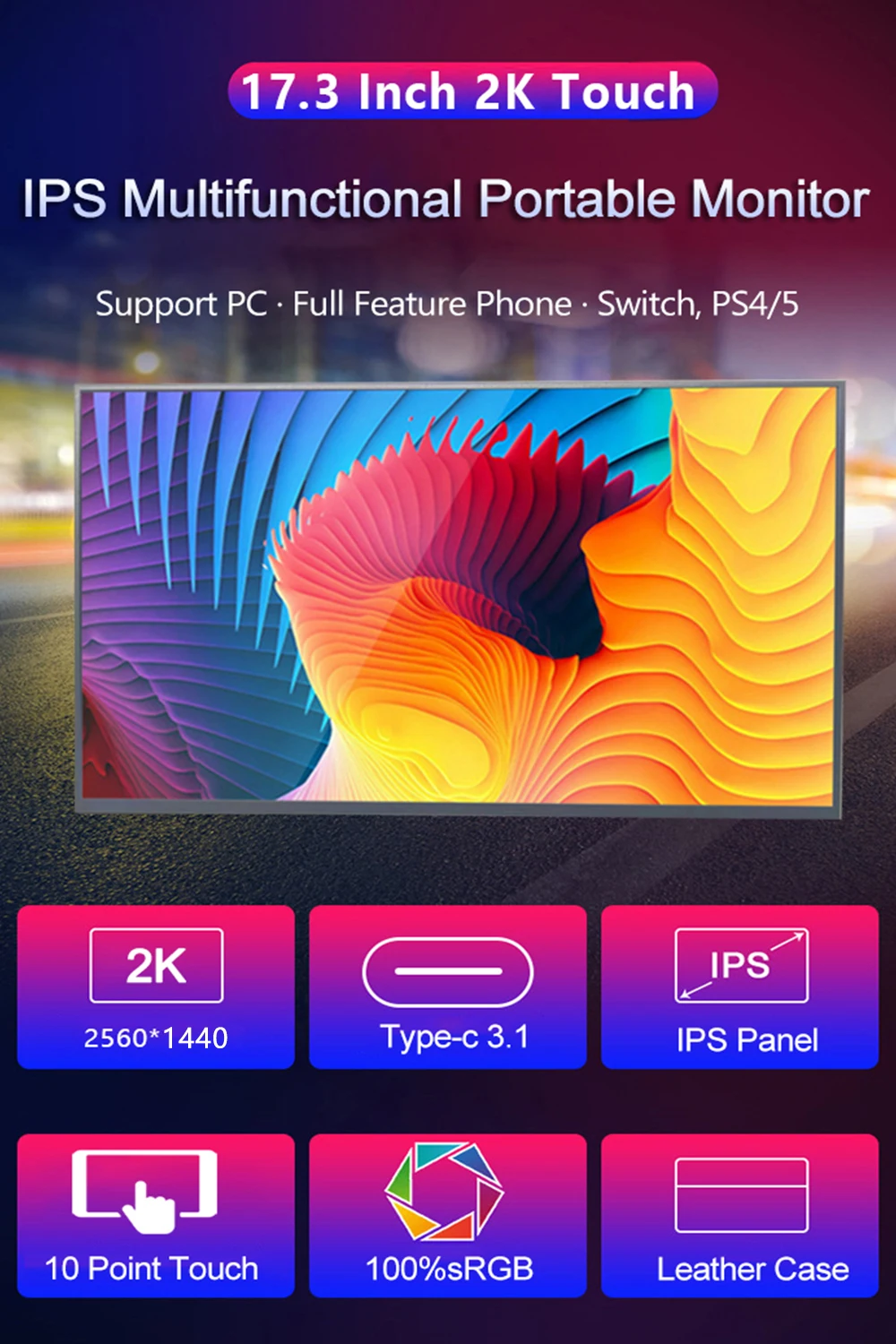 17.3 Inch 2K Touchscreen Portable Monitor 165HZ 2560*1440 HDR 100%sRGB Display IPS Screen For PC Laptop Xbox PS4 PS5 Switch - Купить с бесплатной доставкой