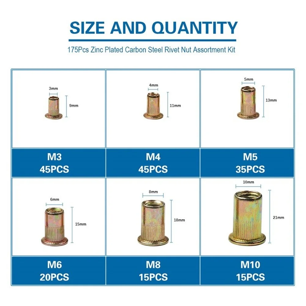 OYfuXUMAoLLooked for 175Pcs Flat Rivet Nuts M3 M4 M5 M6 M8 M10 Zinc Steel Riveting Nut Insert Nutsert Threaded Cap Kit for a long time, but could not find it? Bring to your attention 175Pcs Flat Rivet Nuts M3 M4 M5 M6 M8 M10 Zinc Steel Riveting Nut Insert Nutsert Threaded Cap Kit with the best price!