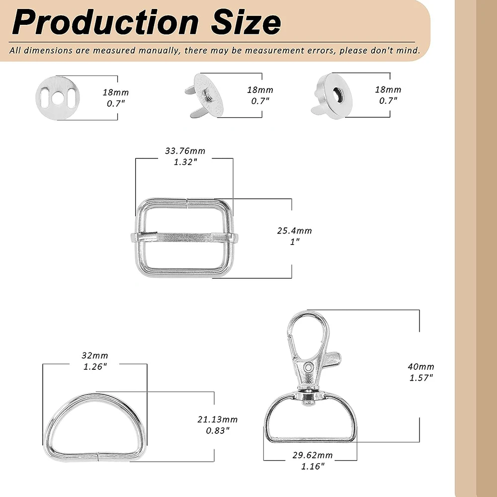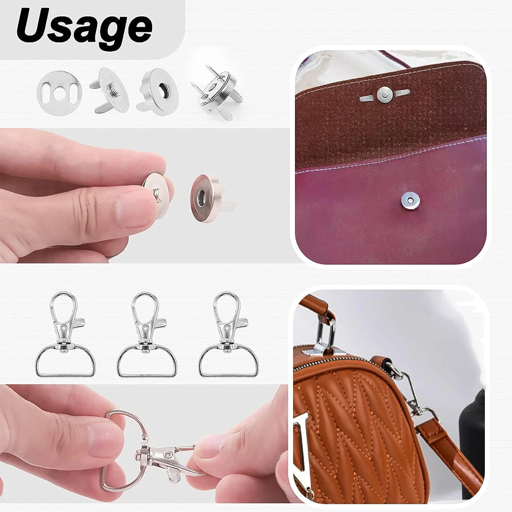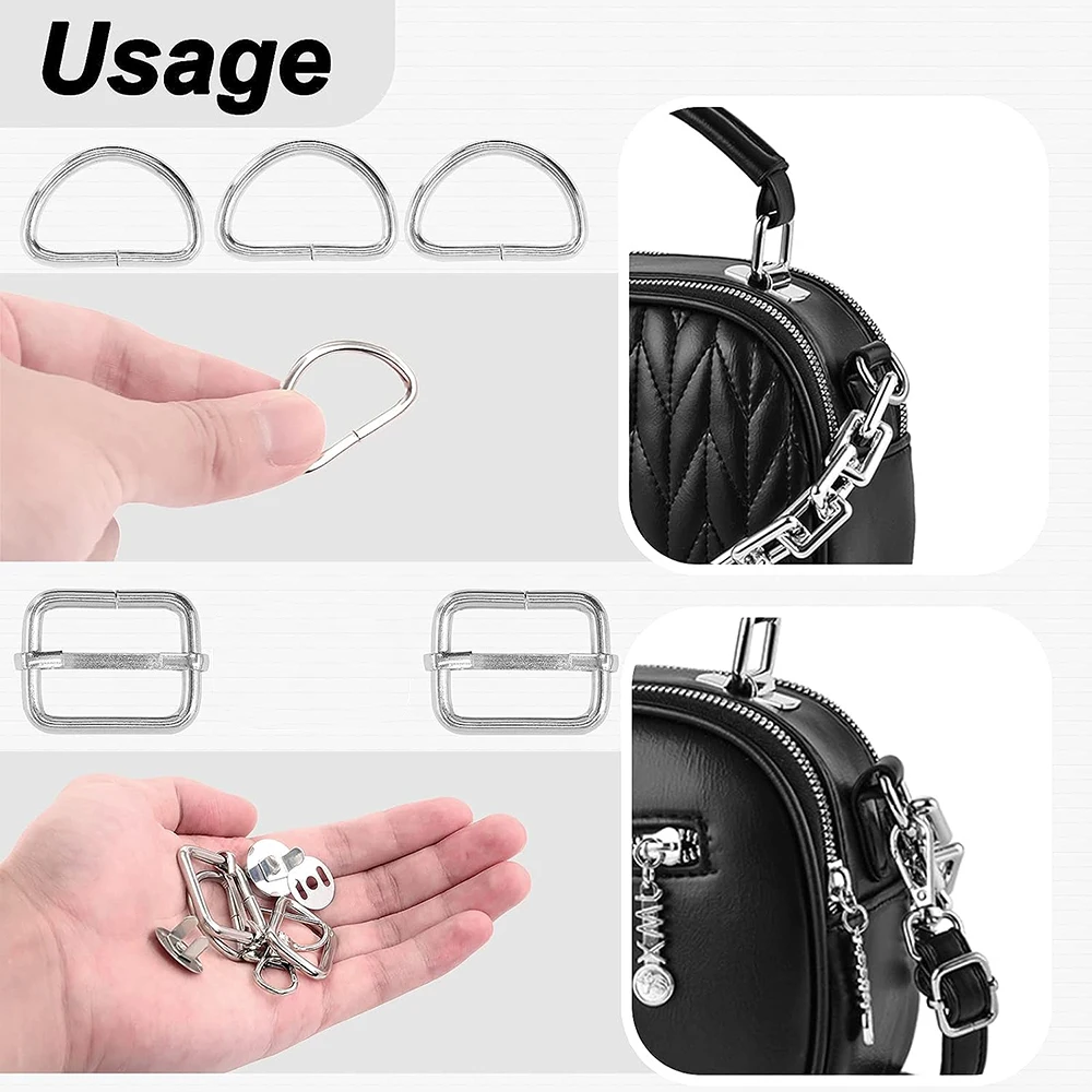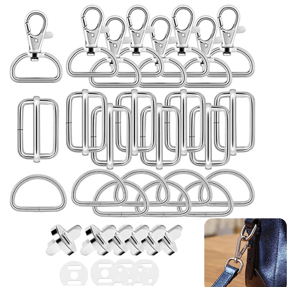18/15PCS Purse Hardware Buckles Sets Bag Making Assortment Kit Includes Swivel D Ring Hooks Clasps Slide Buckles Snap Button - Купить с бесплатной доставкой
