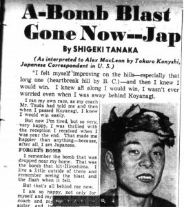 Том Дэрдэриан Tom Derderian, автор монографии об истории Бостонского марафона, так характеризует японских бегунов, отправившихся покорять Америку в 1951 году: «Японцы прибыли, чтобы бежать в своей гонке, и им было что доказывать. Миролюбивая, но соревновательная, национальная гордость существовала в оккупированной Японии. Вскоре мир узнает о ней благодаря экспорту превосходных марафонцев из числа крепких, дисциплинированных молодых людей, чьё количество казалось бесконечным. Эти молодые японцы выросли среди войны, когда бомбы падали на их землю». Тот факт, что Танака был уроженцем небольшого поселения недалеко от Хиросимы, также не остался без внимания американцев. Когда японские спортсмены, прибывшие в США за несколько дней до марафона, показывались в кинотеатрах или общественных местах, американская публика бросала им деньги, завёрнутые в газету, желая таким образом поддержать испытывавших финансовые трудности и нехватку всего и вся людей. Танака вспоминал эти эпизоды со смешанными чувствами. С одной стороны, он произносил слова благодарности за поддержку – на эти деньги он смог закупиться дефицитным сахаром и обрадовать родных и близких в Японии. С другой – подобная форма благотворительности заставляла его чувствовать себя попрошайкой. Американская пресса окрестила триумфатора Бостонского марафона прозвищем «Атомный мальчик» Atomic Boy (原爆ボーイ яп. гэмбаку бой) и описывала его победу как удивительную историю о силе воли и стойкости человеческого духа, ведь всего 6 лет назад он пережил уничтожение родных мест, а уже сегодня победил в таких крупных соревнованиях. Надо ли говорить, как сам Танака относился к славе под таким прозвищем. Неожиданное внимание, обрушившееся на японских спортсменов и заставившее с интересом разглядывать их под лупой в стараниях понять причины успеха, сказалось положительно не только на авторитете японского спорта, но и местных производителей одежды. Танака выиграл Бостонский марафон в необычных кроссовках, чьи носы напоминали японские носки таби, а фирма «Оницука Тайгер», разработавшая эту модель, получила такую бесплатную рекламу, о которой она не могла и мечтать.