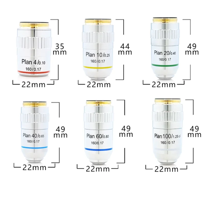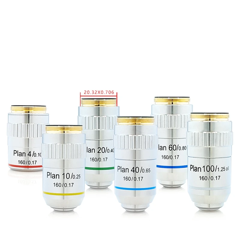195 Plan Achromatic Objective Lens 4X 10X 20X 40X 100X Microscope Objective 160/0.17 RMS 20.2 mm for Biological Microscope - Купить с бесплатной доставкой