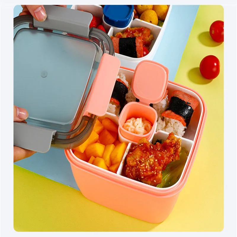 "1PC Portable Lunch Box Large-capacity Sealed Bento Box Square Double-layer Fruit Lunch Box Plastic Compartment For School Office" * Buy Now Just For 11$
