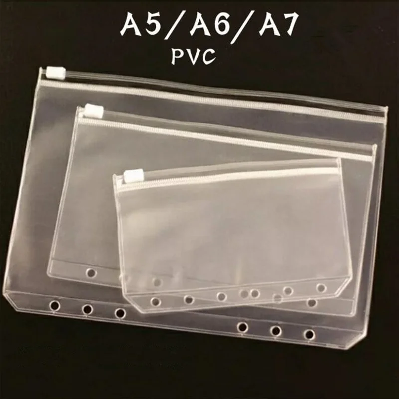 1PC Transparent Waterproof PVC Zipper Binder Folder Storage Bag Pouch Loose Leaf Notebook Accessories A5/A6/A7 Size Available - Купить с бесплатной доставкой