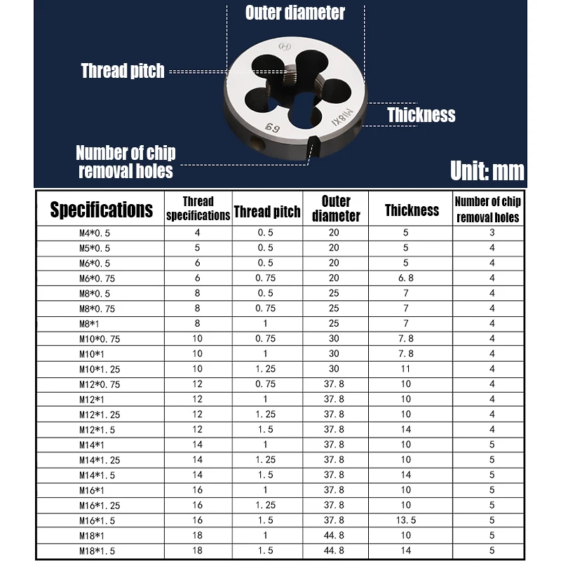 scxHDJWfHere you can buy 1PCS M4-M18 Right Hand Thread Die Fine Thread Die Alloy Steel Round Die Metric Thread Die Metal Thread Tool Threading Tools with free delivery to your post office.