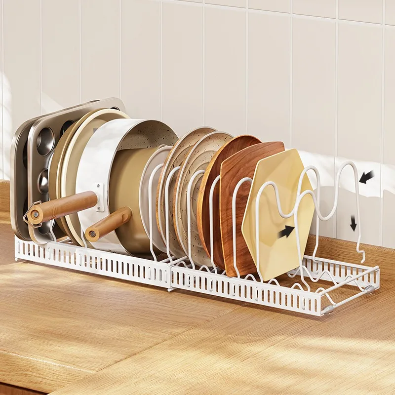 1PCS Wrought Iron Pot Cover Storage Rack Multi-layer Adjustable Kitchen Storage Multi-functional Retractable Cabinet - Купить с бесплатной доставкой