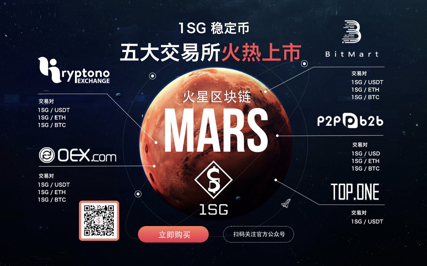 To trade 1SG now, head over to these exchange platforms: