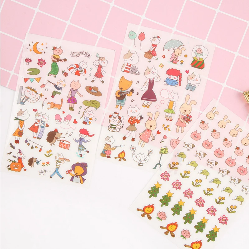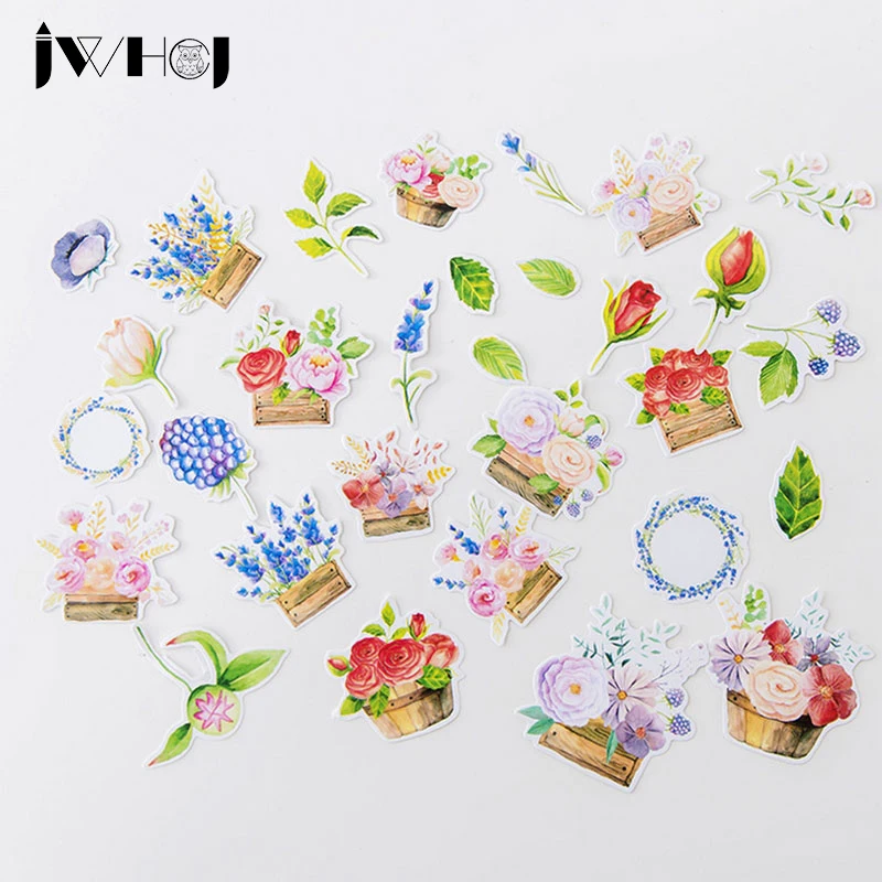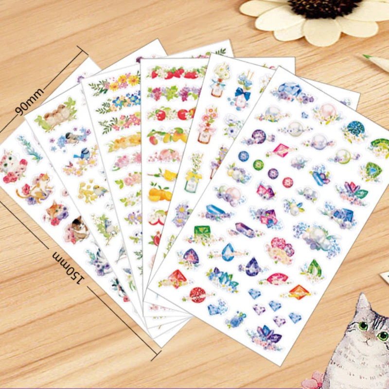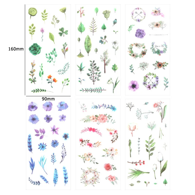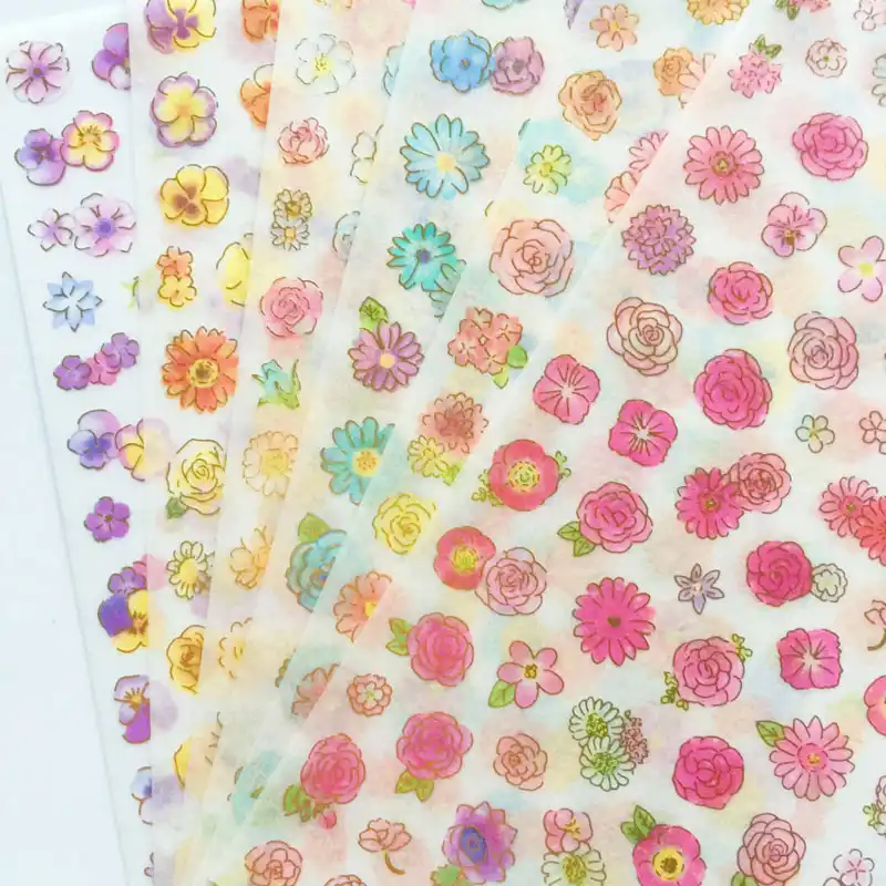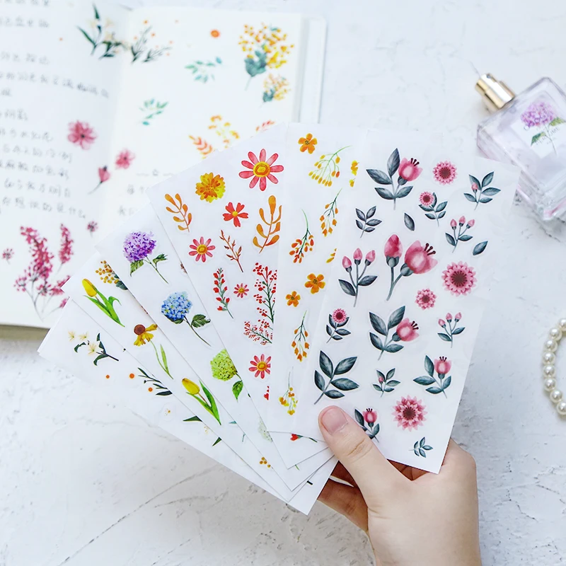 1Sheets Colorful Flower Stickers Scrapbooking Diary Stationery Stickers Translucent Waterproof Stickers DIY Decorative Stickers