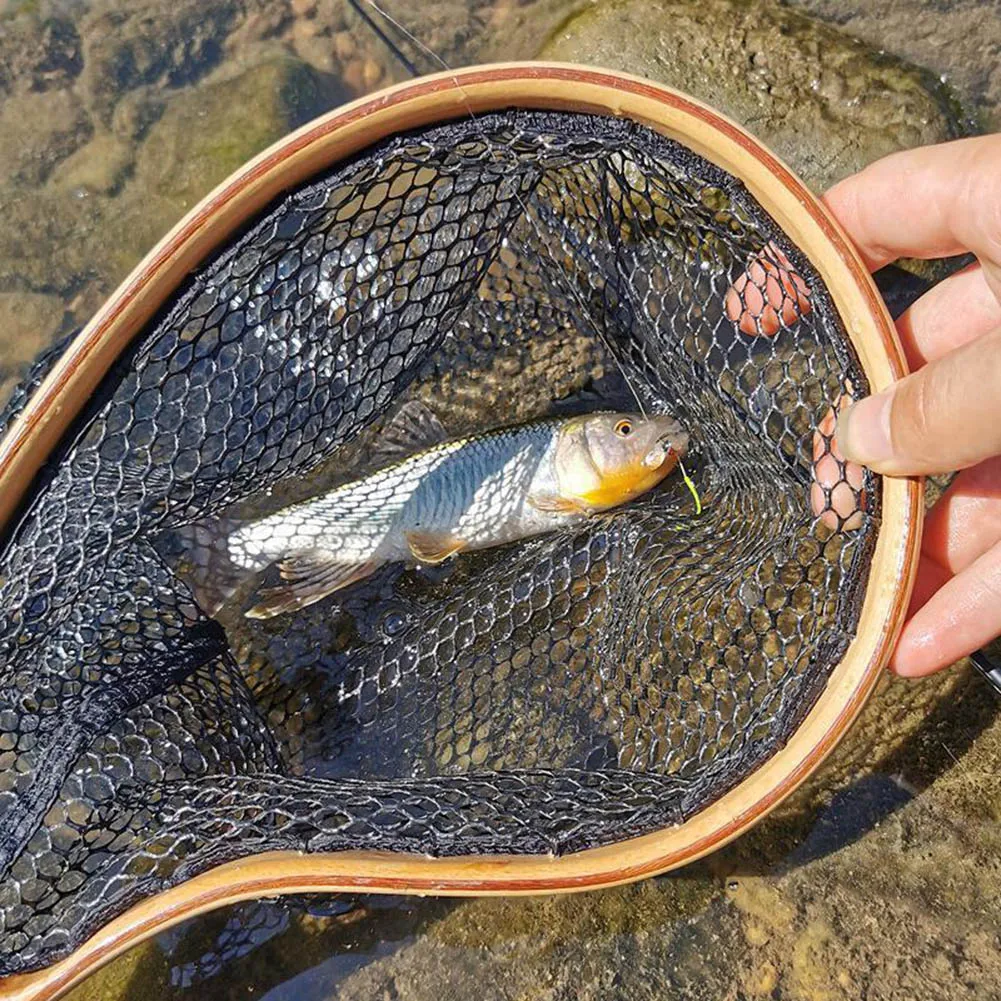 1pc Fly Fishing Net Landing Catch Release Net Wooden Frame Stream Fishing Nets Hexagonal Mesh Ergonomically Designed Handle - Купить с бесплатной доставкой