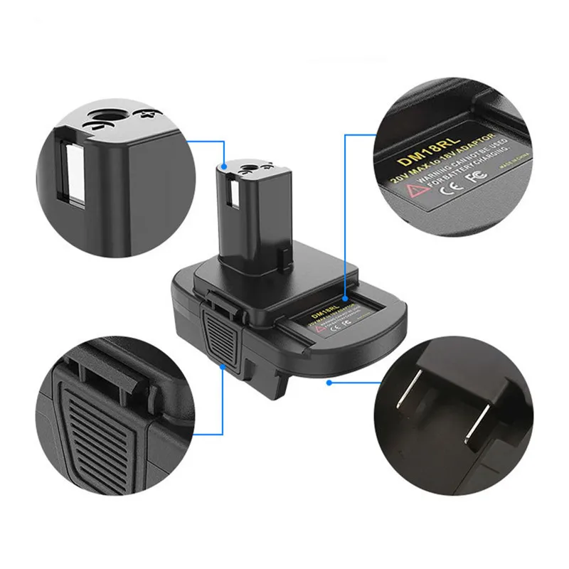 vcmgAGSZHere you can buy 1pc For Makita DM18RL Battery Convertor Adapter Black Cordless Plug Tools USB Port For RYOBI 18V Li-Ion Battery Convert Adapter with free delivery to your post office.