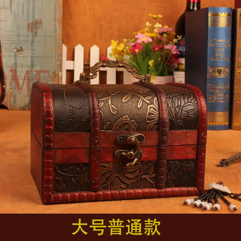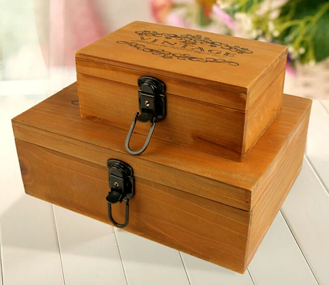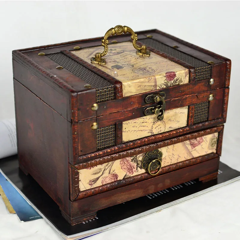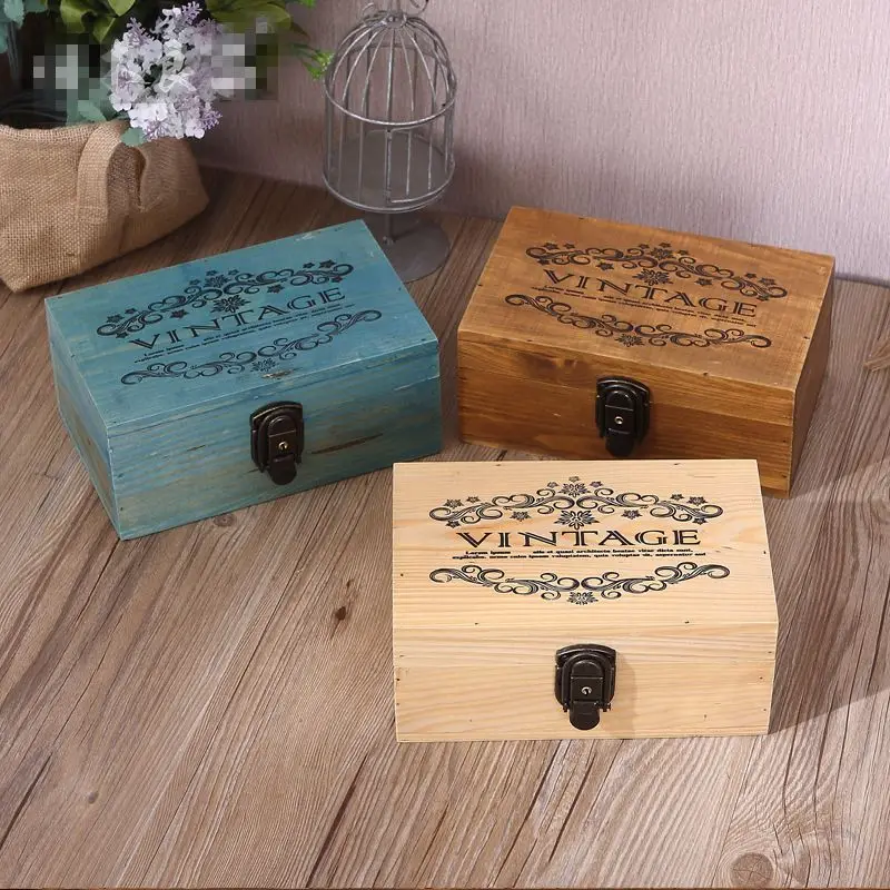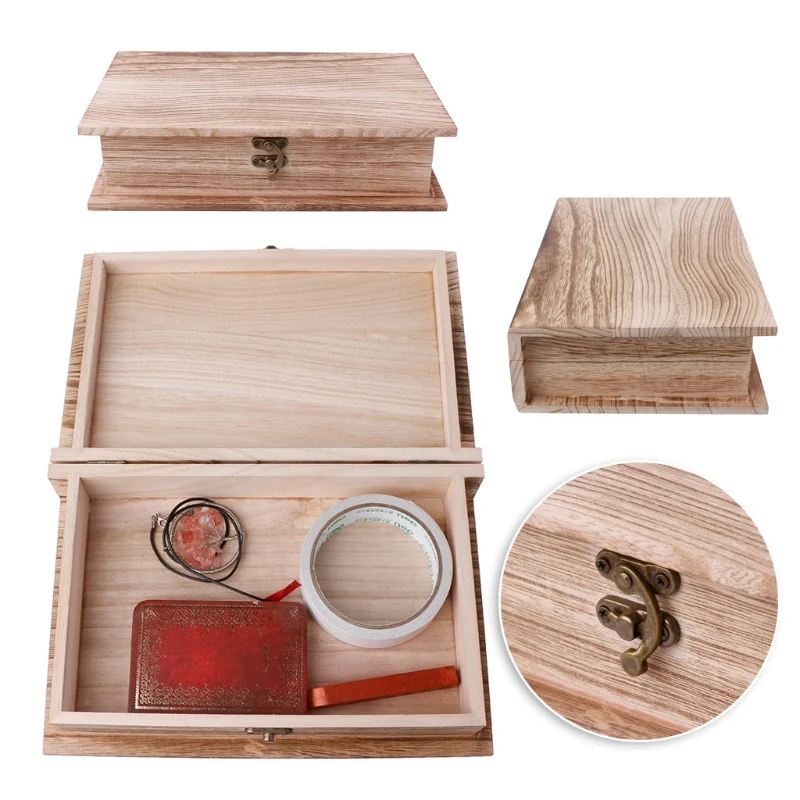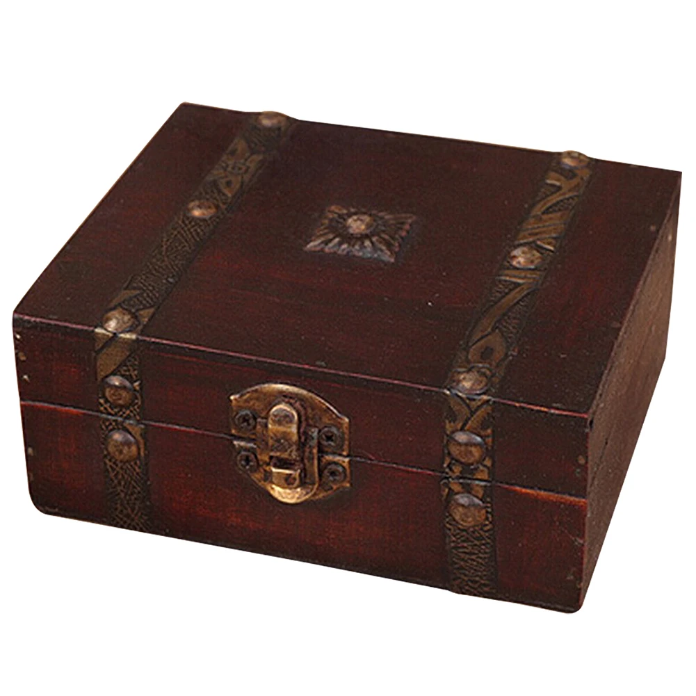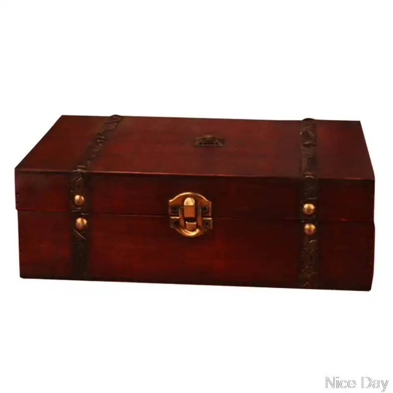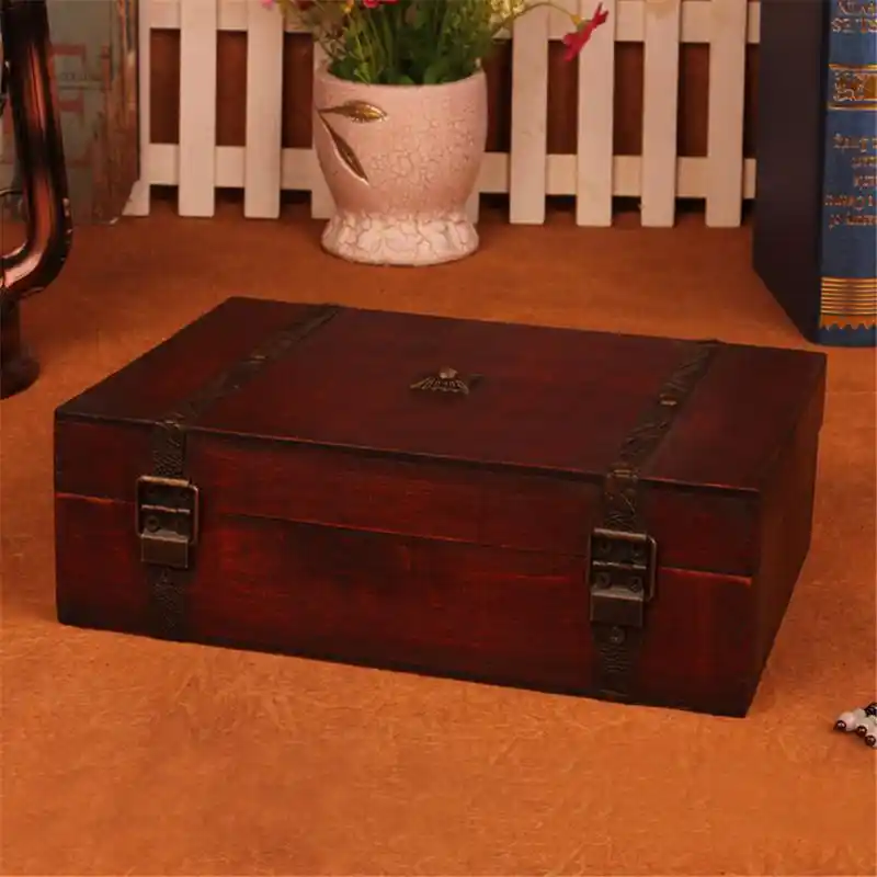 1pc Vintage Wooden Jewelry Boxes Desktop Storage Boxes Large Sundries Document Books Box Storage Case Without Lock