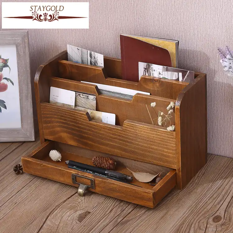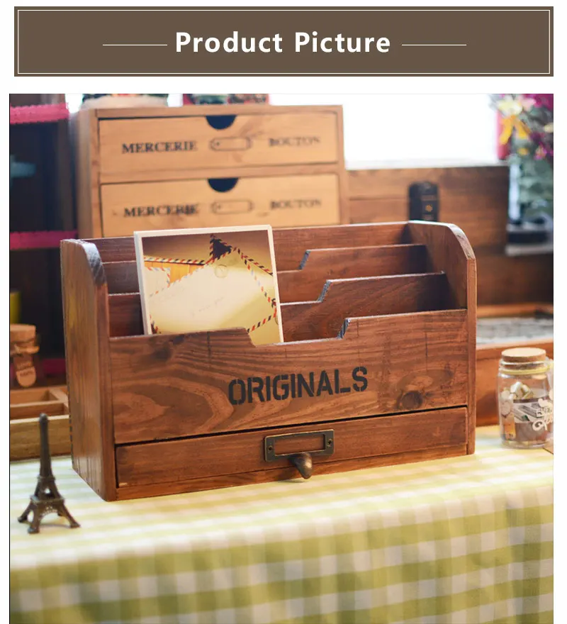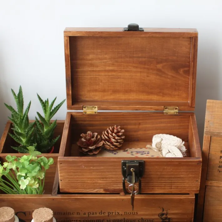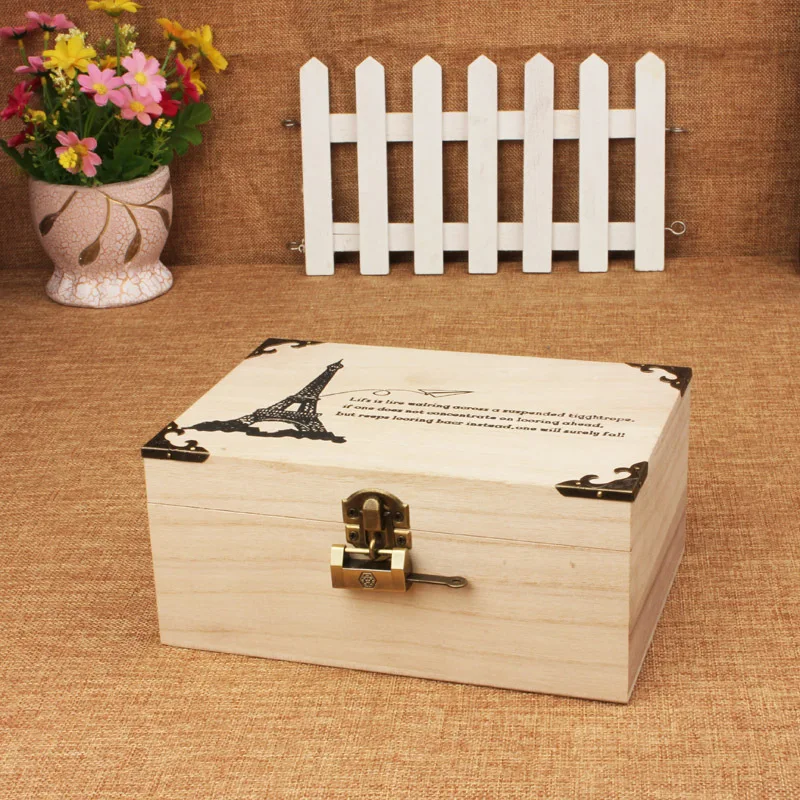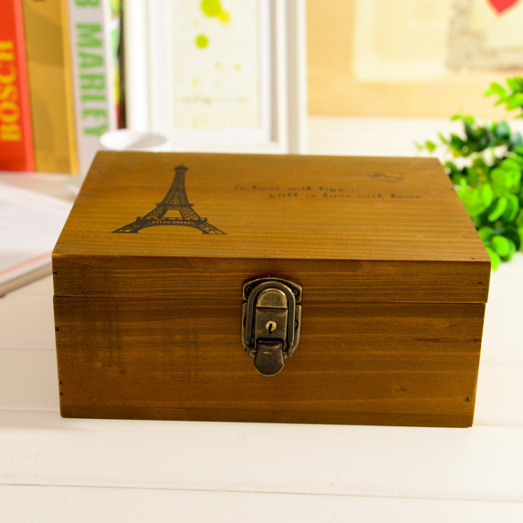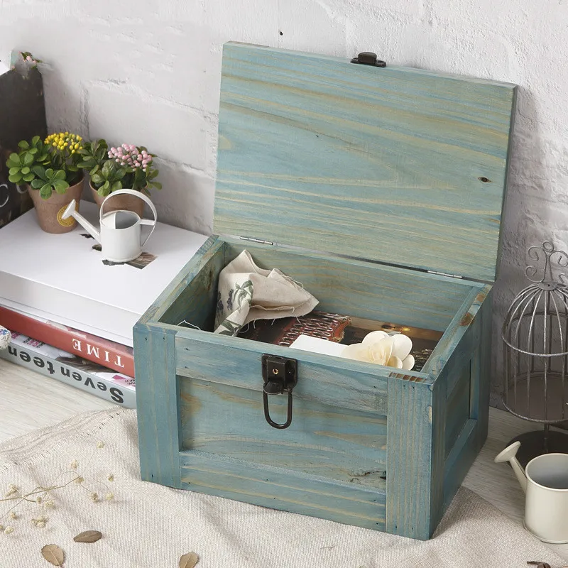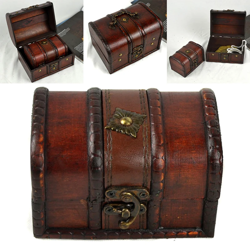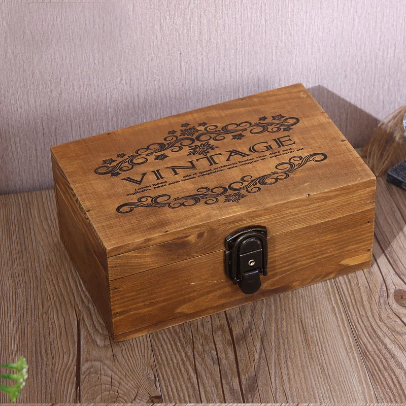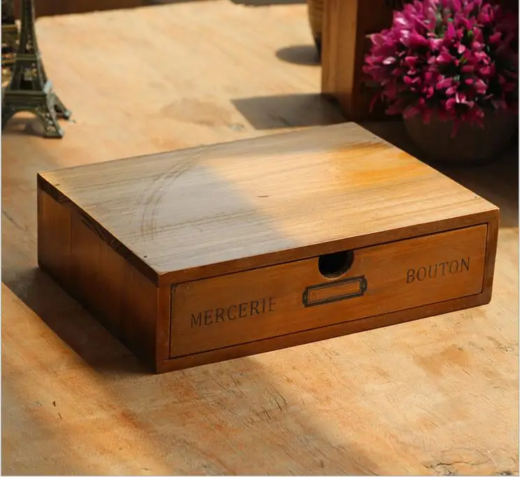 1pc Vintage Wooden Jewelry Boxes Desktop Storage Boxes Large Sundries Document Books Box Storage Case Without Lock
