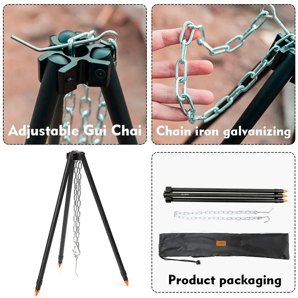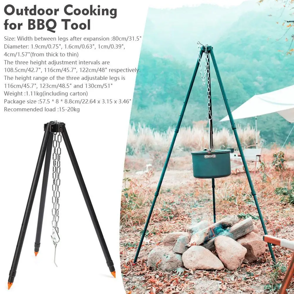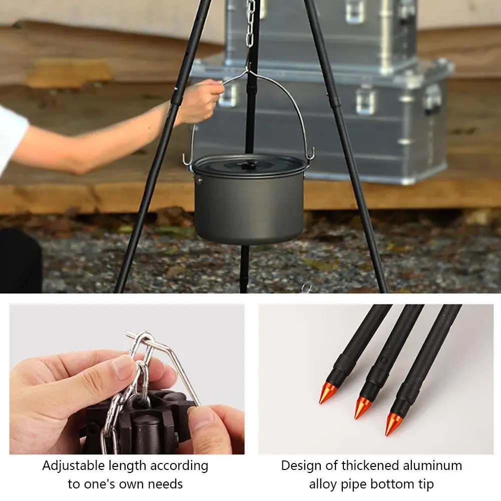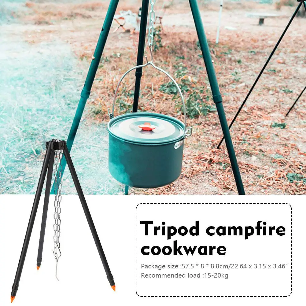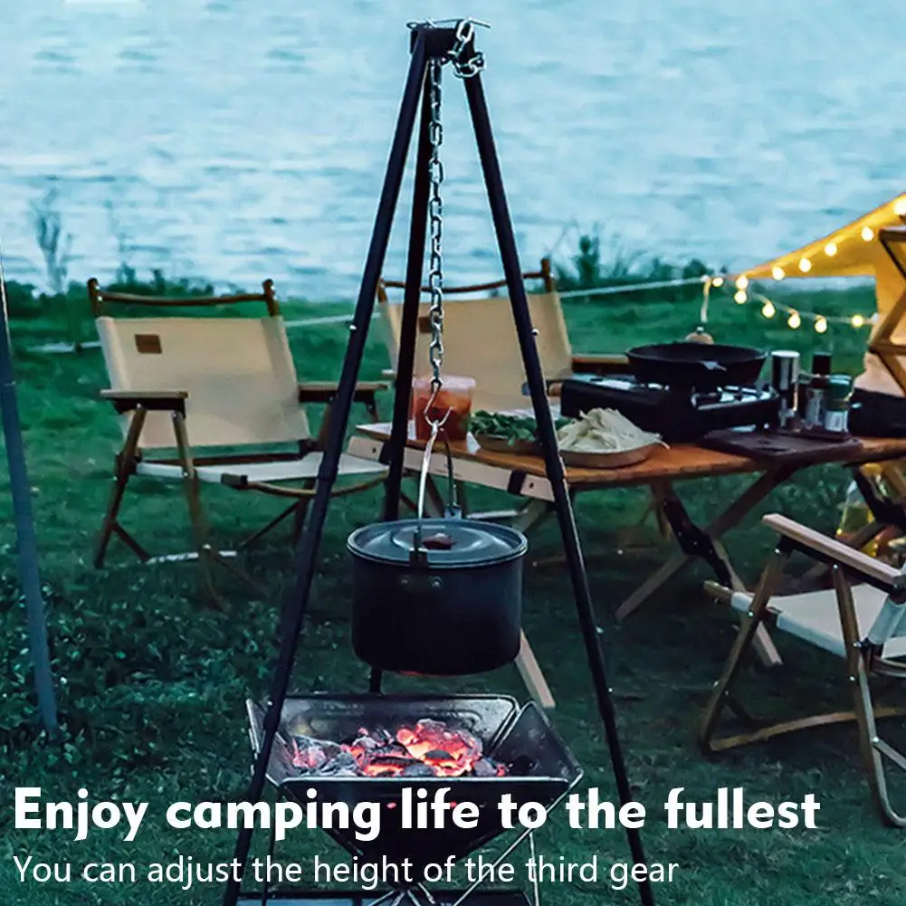 1pcs Black Outdoor Large Bonfire Tripod Portable Camping Picnic Campfire Cooking Pot Hanging Chain Triangle Support Stand Rack - Купить с бесплатной доставкой