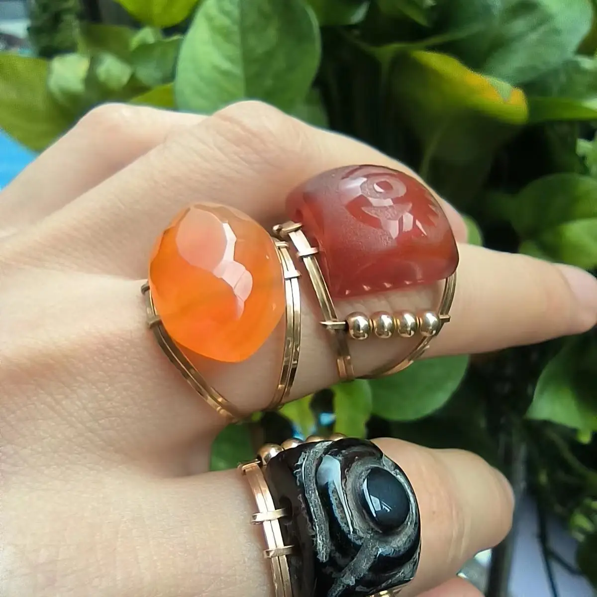 "1pcs/lot Natural Agate Eye Pattern Ring 14K gold Do not fade Handmade unique designer style Miss jewelry multiple styles gem" * Buy Now Just For 39$