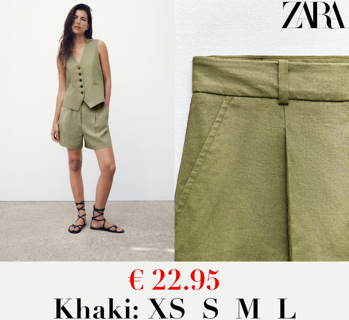 € 22.95 LINEN BLEND HIGH-WAIST BERMUDA SHORTS
