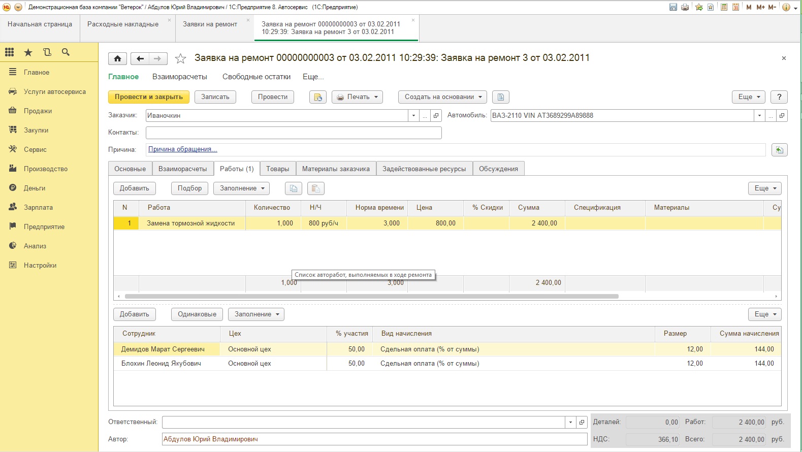 1с автосервис демо