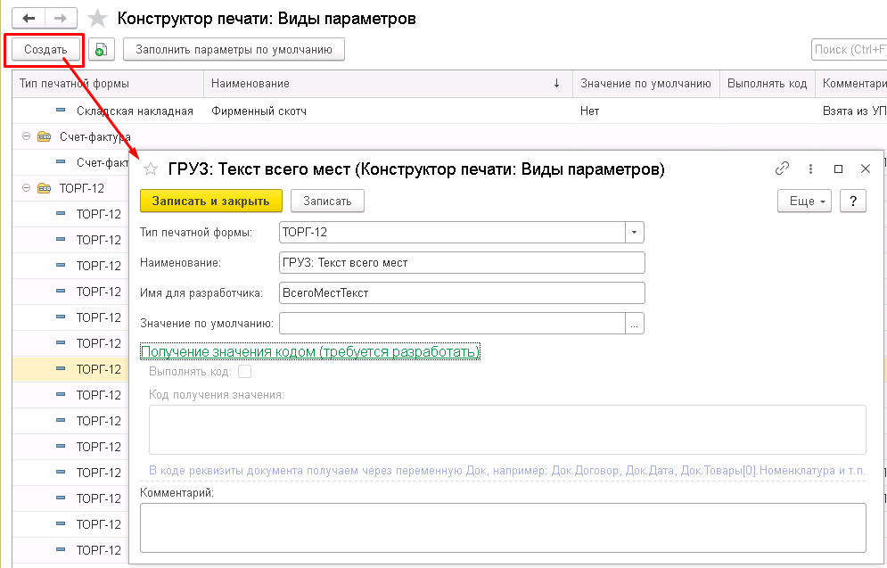 1с кнопка печати на форме