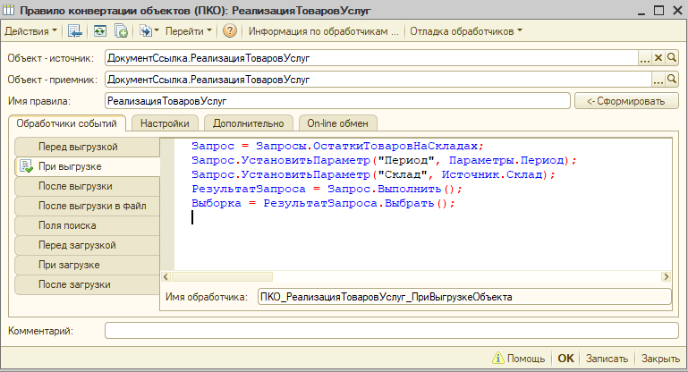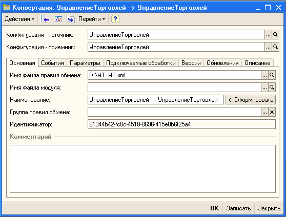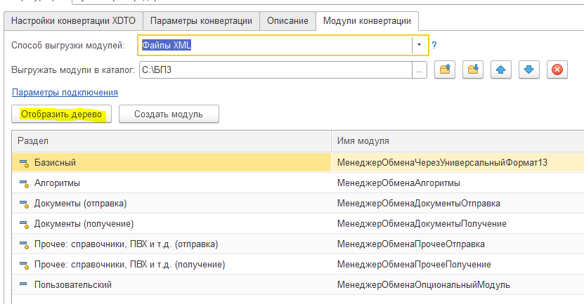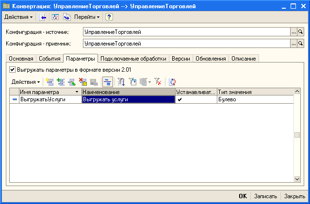 1с конвертация данных параметры