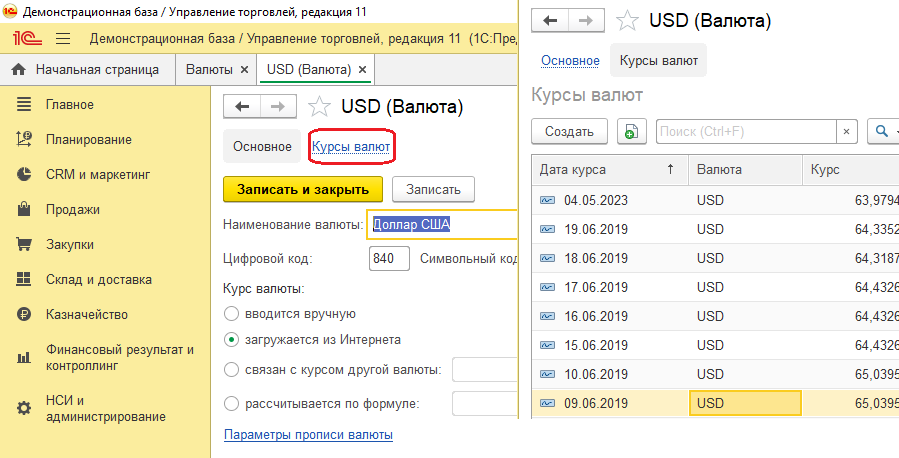 1с курс обмена данными