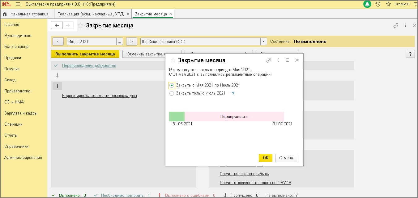 1с не выполняет закрытие месяца