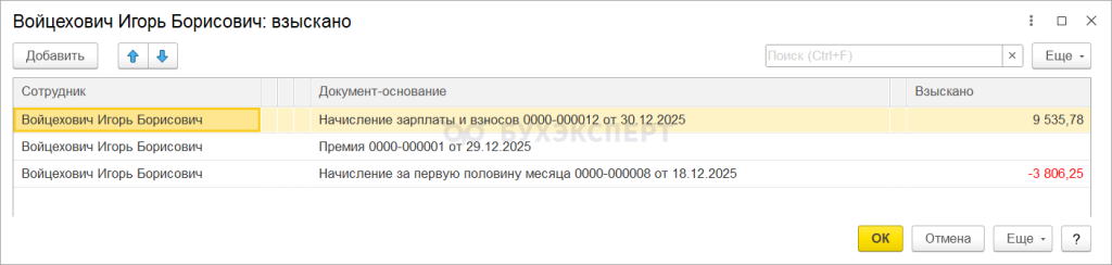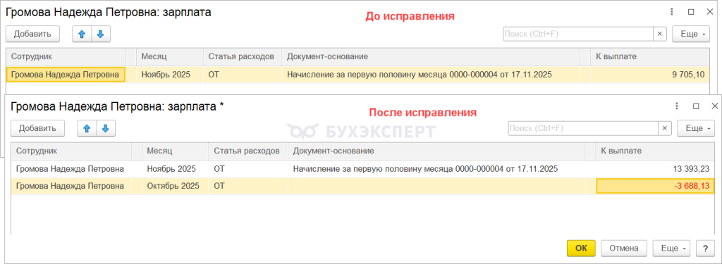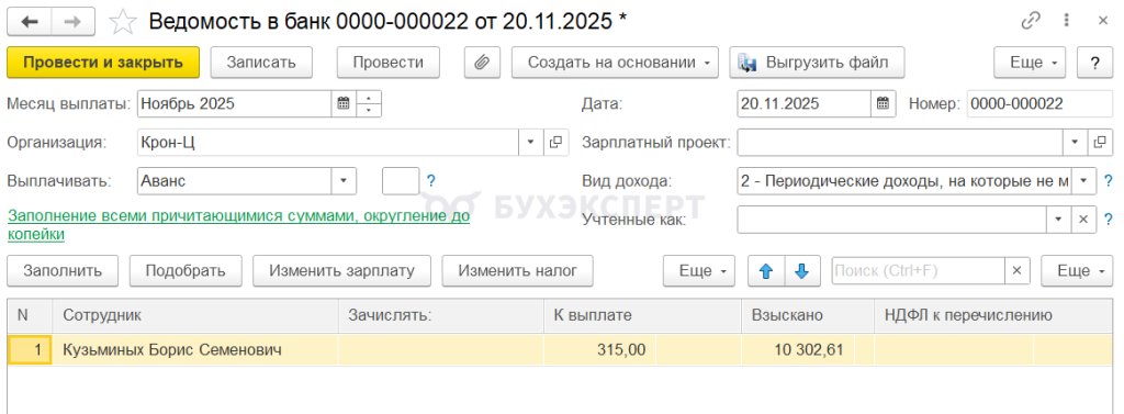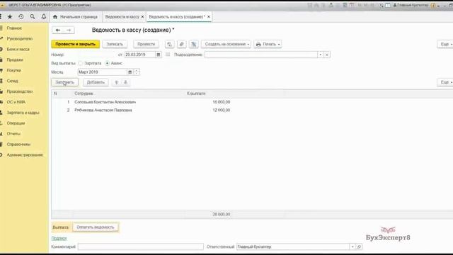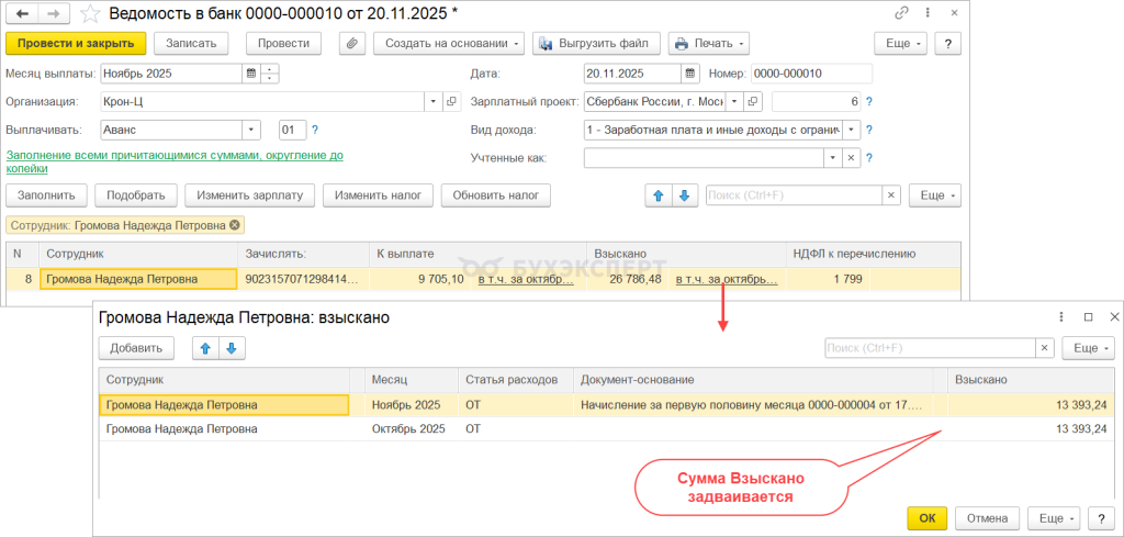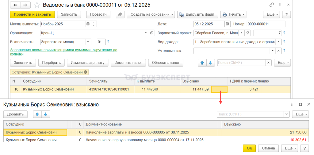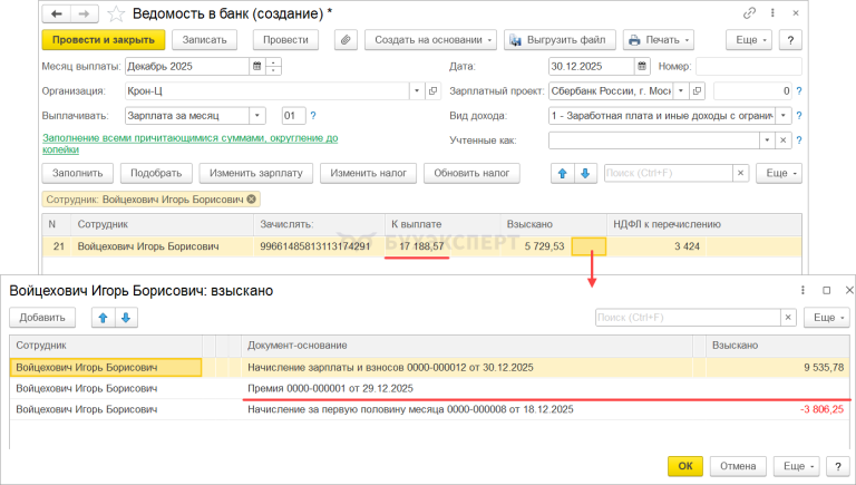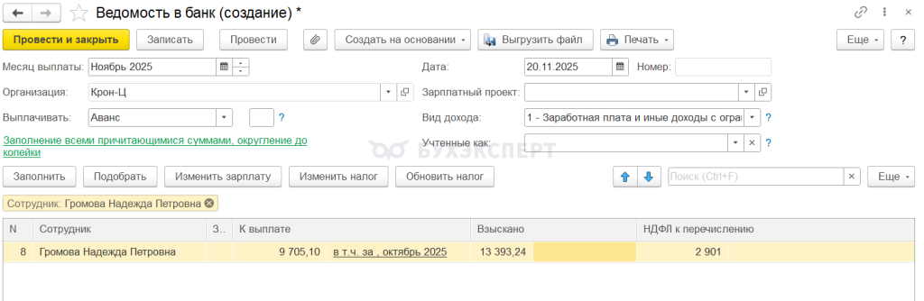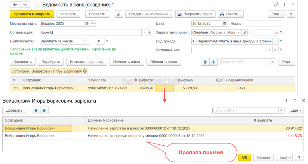 1с ошибка в ведомости
