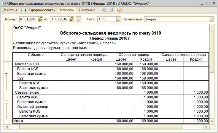 1с отчет обороты счета
