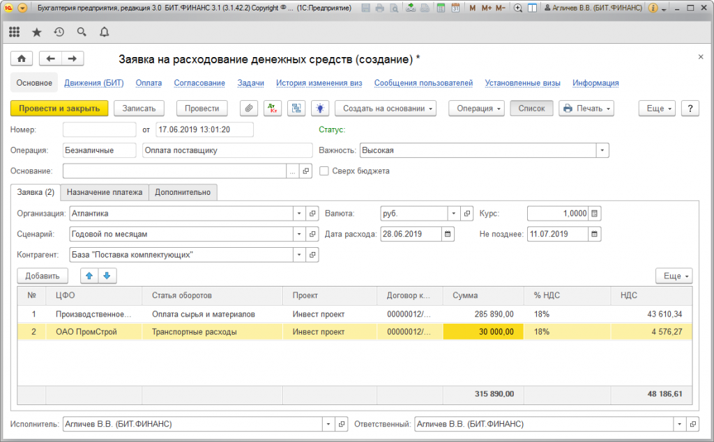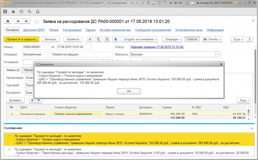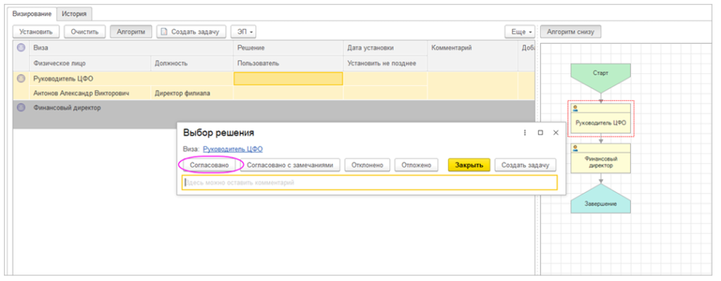 1с платеж не согласован