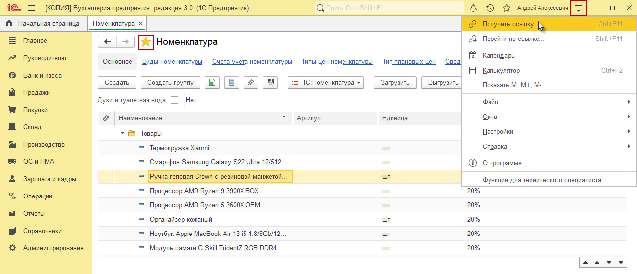 1с получить ссылку справочник