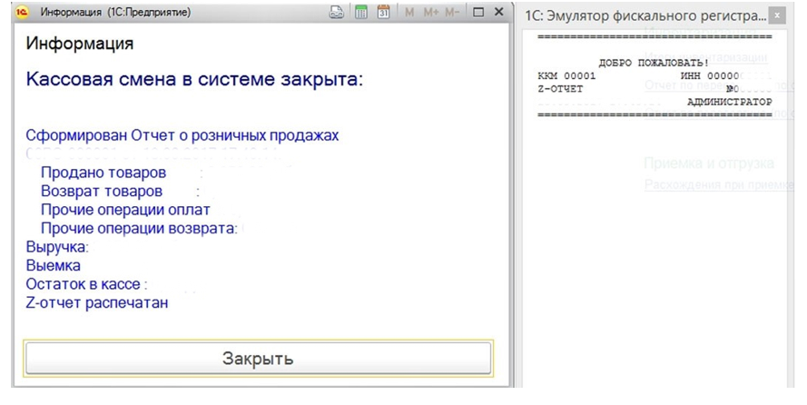1с розница времени