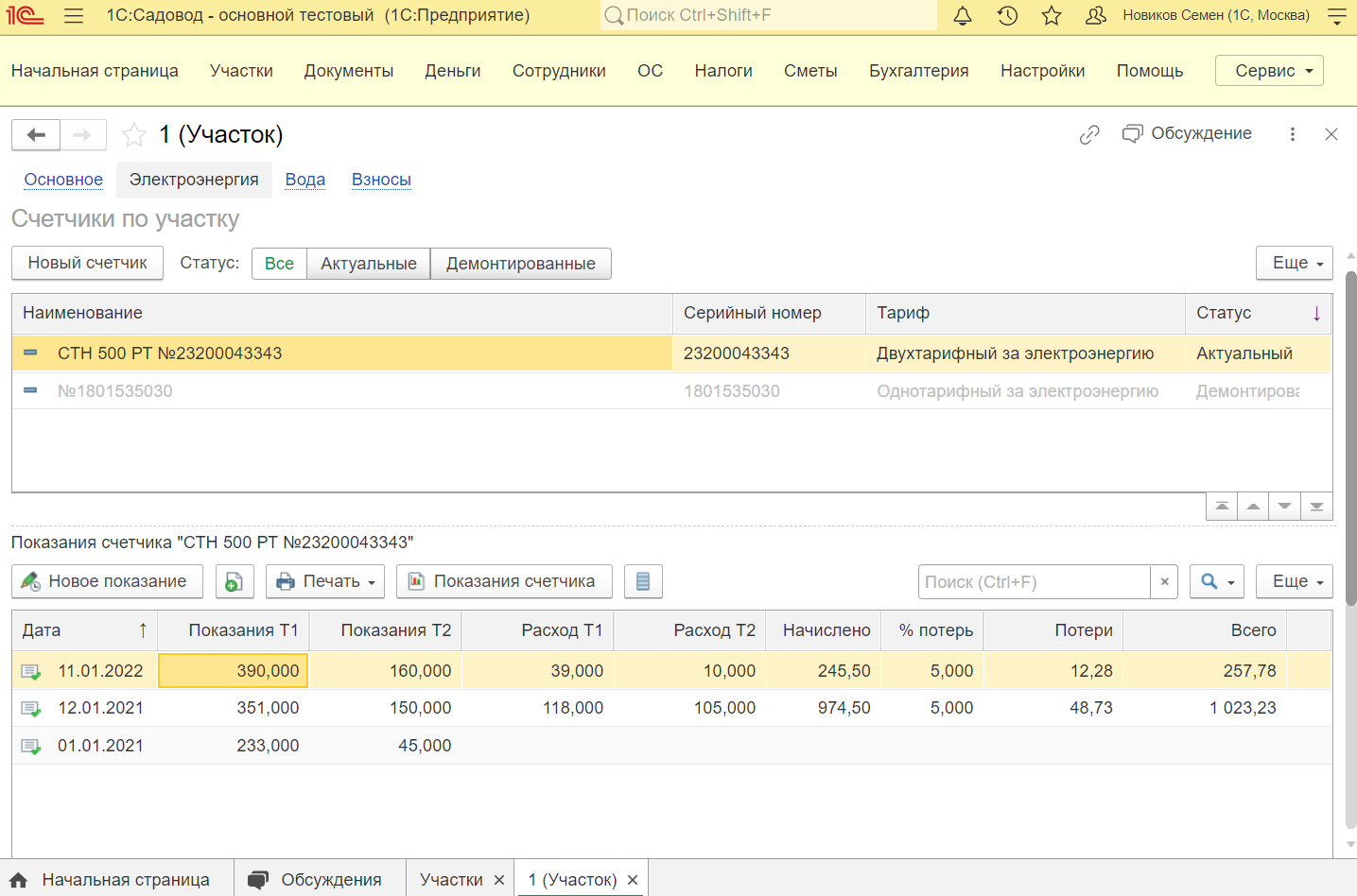 1с садовод электроэнергия