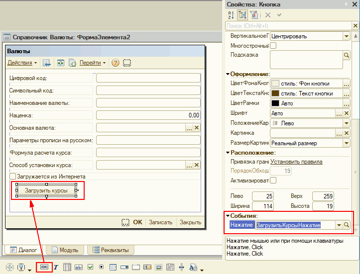 1с высота формы