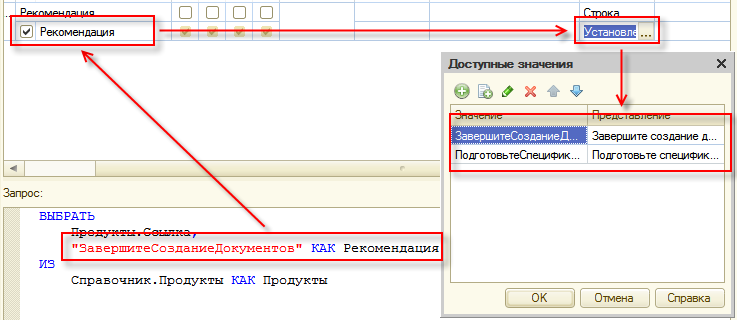 1с запрос через точку
