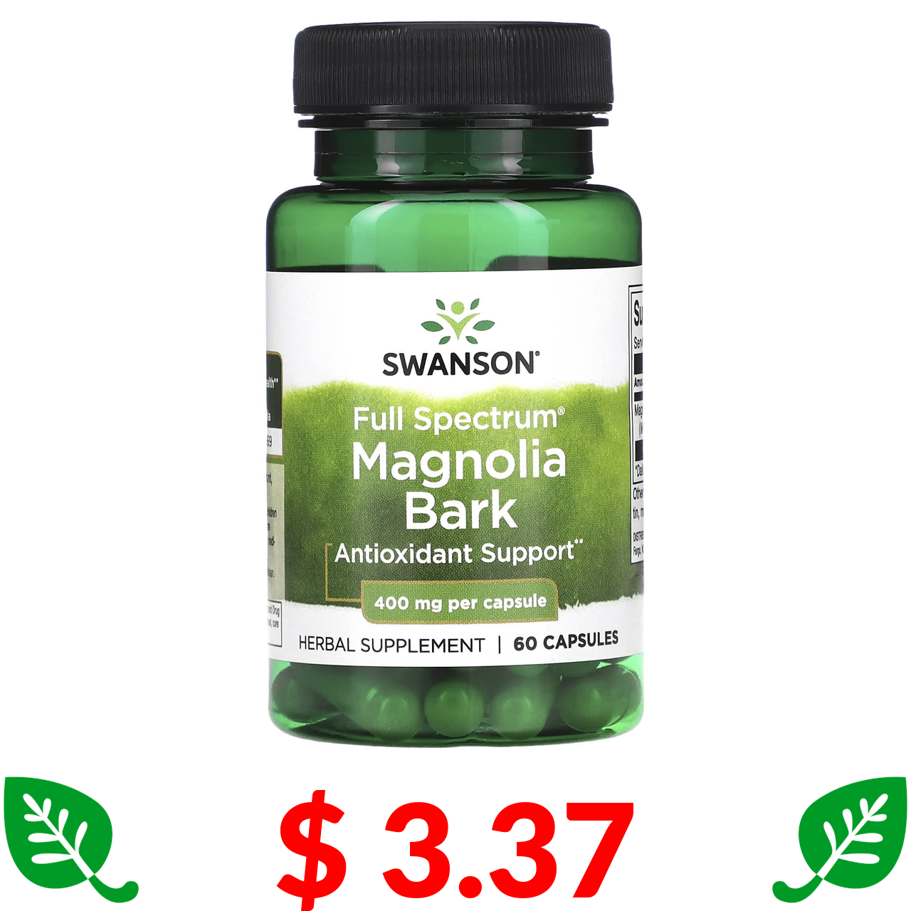 $ 3.37 Swanson, Full Spectrum Magnolia Bark, 400 mg, 60 Capsules