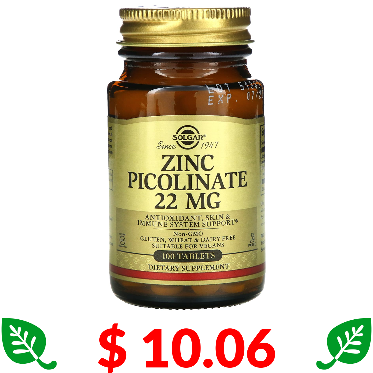 $ 10.06 Solgar, Піколінат цинку, 100 таблеток