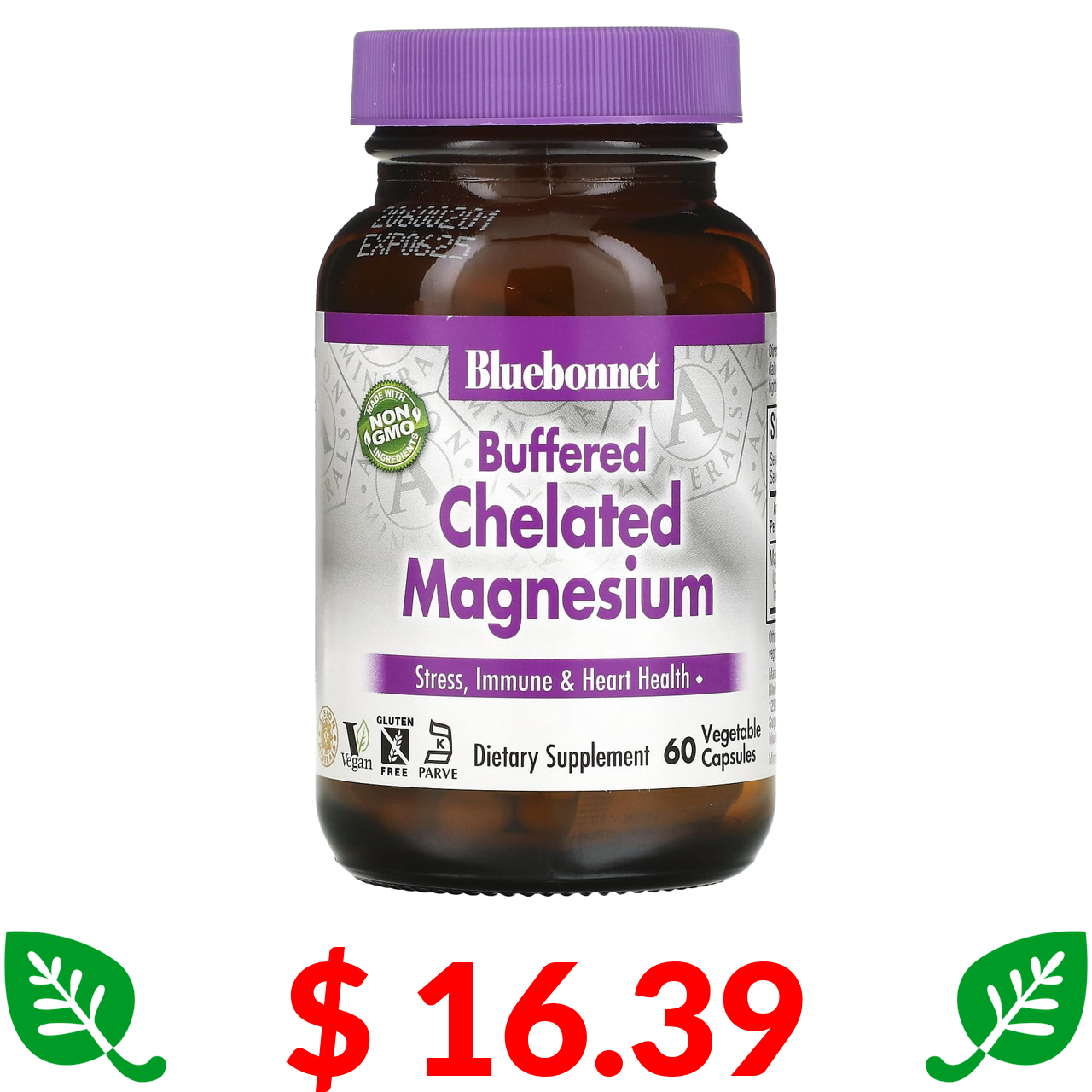 $ 16.39 Bluebonnet Nutrition, буферований хелатний магній, 60 вегетаріанських капсул