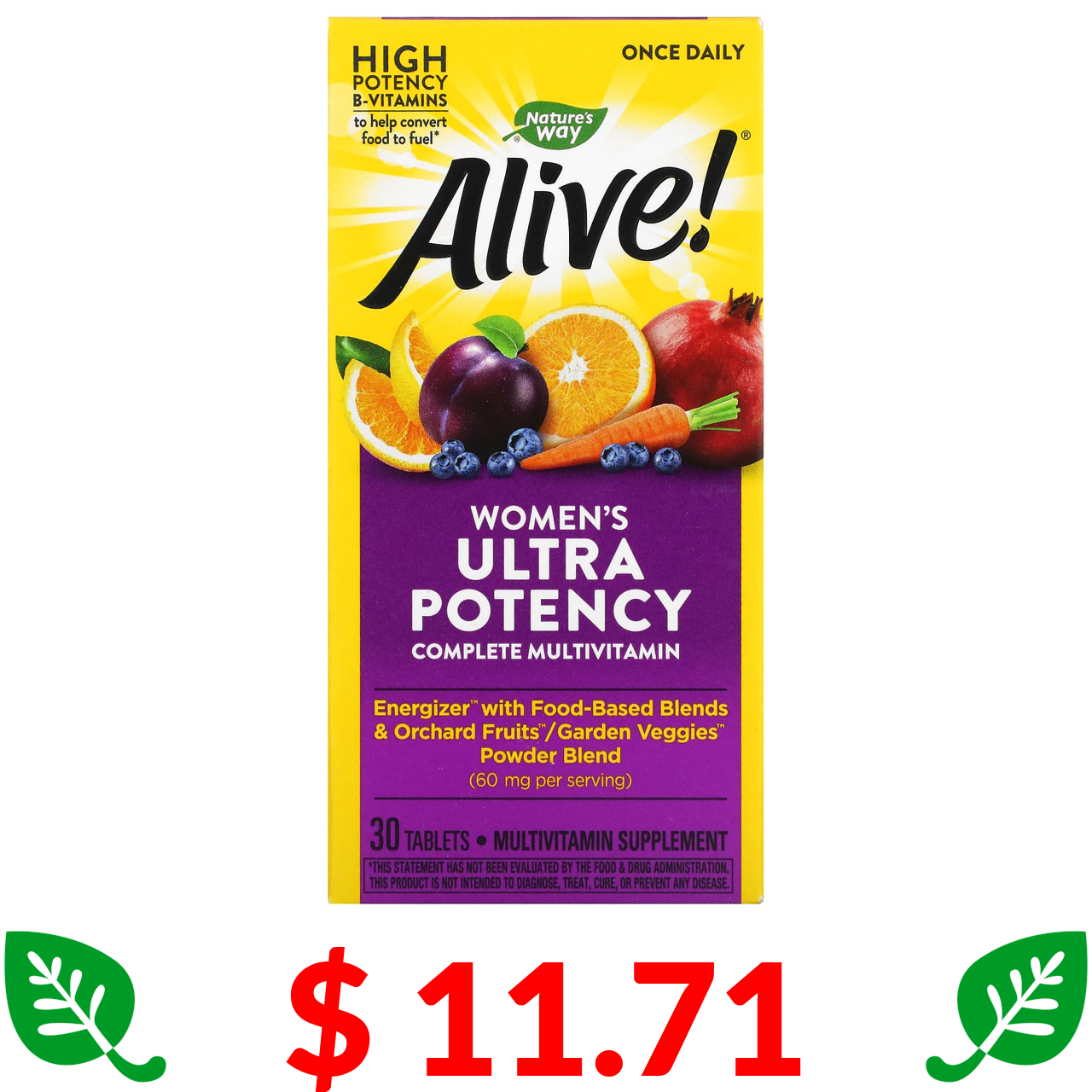 $ 11.71 Nature's Way, Alive! високоефективні мультивітаміни для жінок, 30 таблеток