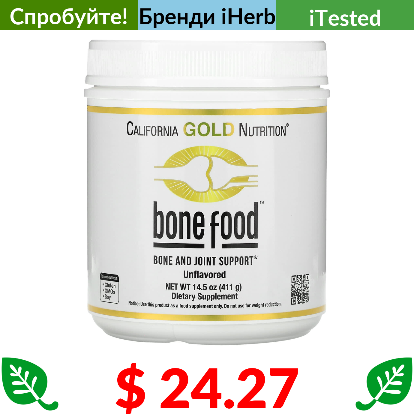 $ 24.27 California Gold Nutrition, Bone Food, підтримка кісток, 411 г (14,5 унції)