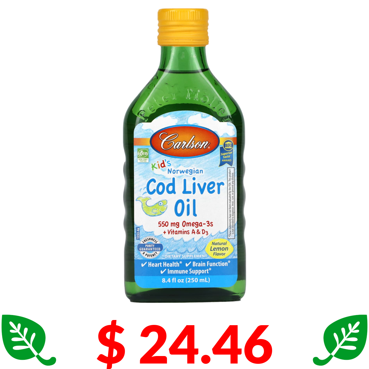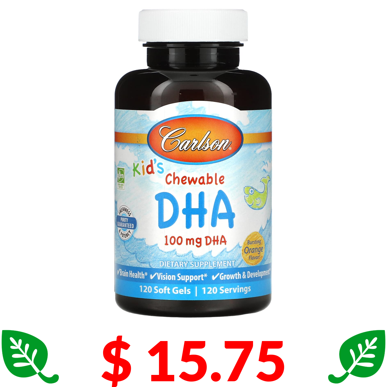 $ 15.75 Carlson, жувальна ДГК для дітей, з насиченим апельсиновим смаком, 100 мг, 120 капсул