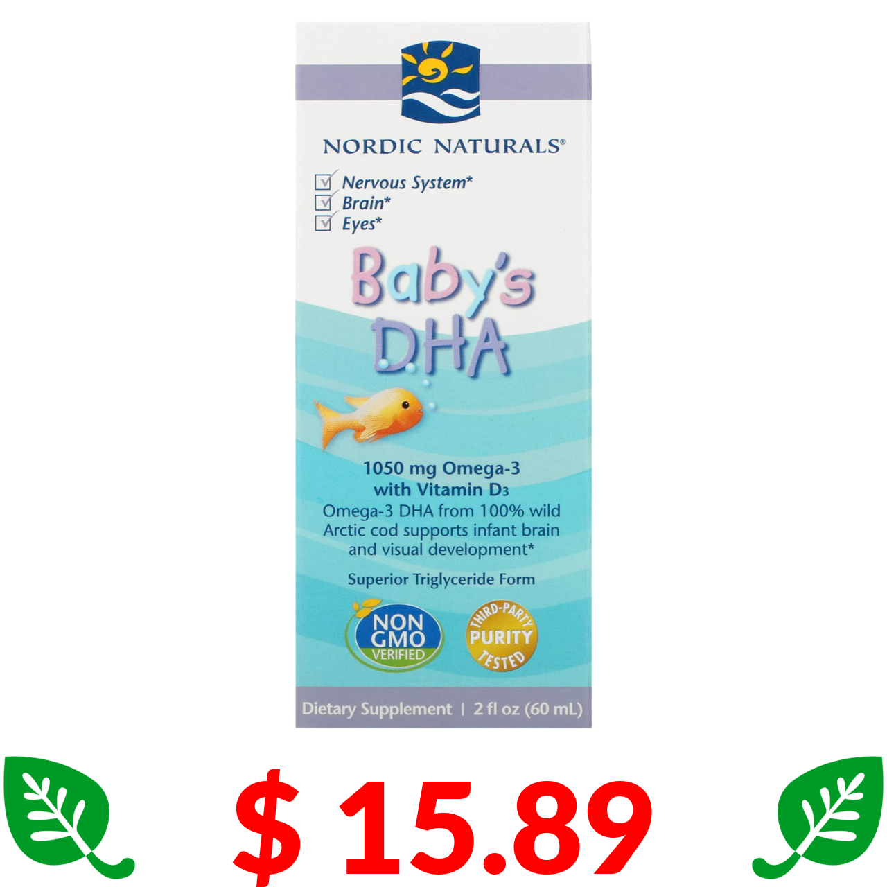 $ 15.89 Nordic Naturals, ДГК для дітей з вітаміном D3, 1050 мг, 60 мл (2 рідк. унції)
