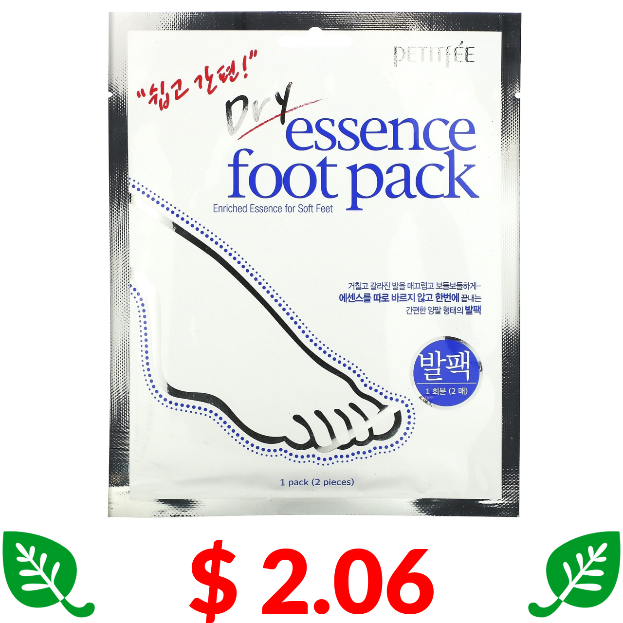 $ 2.06 Petitfee, маска для ніг із сухою есенцією,1 пара