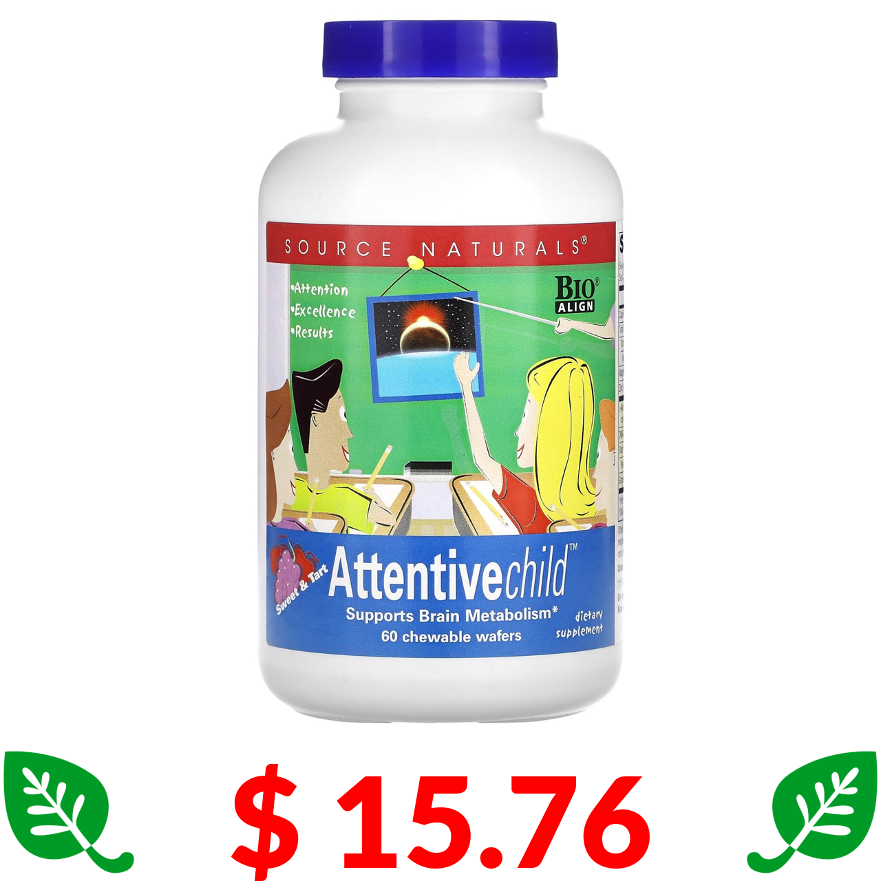 $ 15.76 Source Naturals, Уважна дитина, 60 жувальних вафель