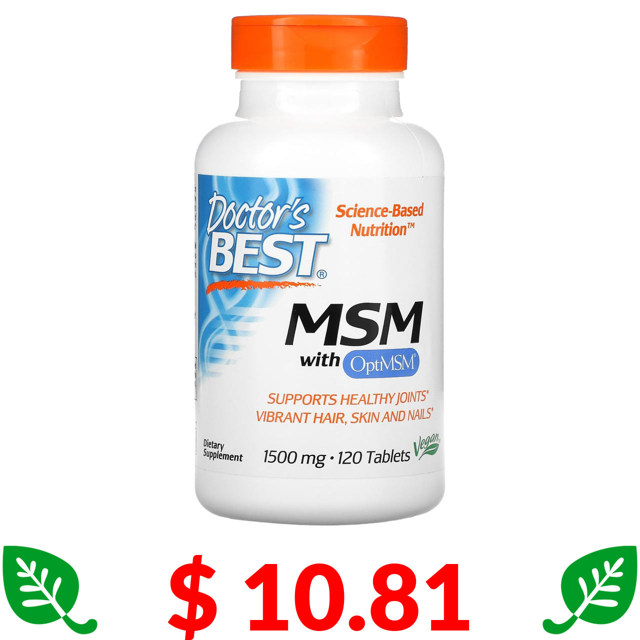 $ 10.81 Doctor's Best, МСМ з OptiMSM, 1500 мг, 120 таблеток