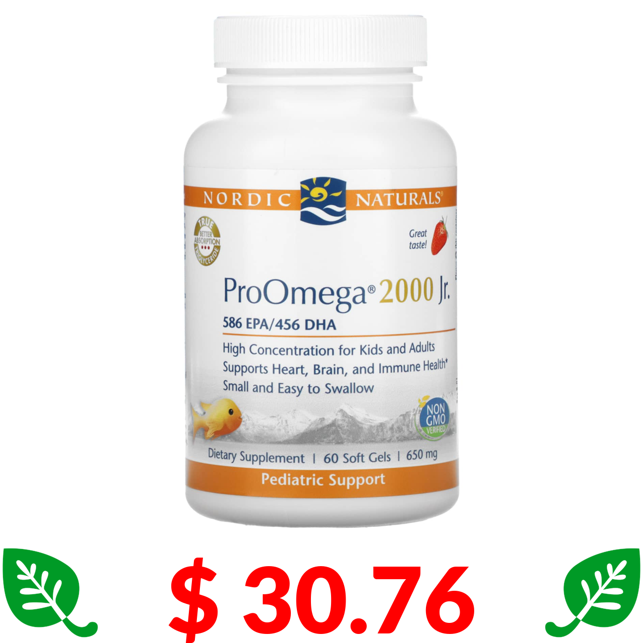 $ 30.76 Nordic Naturals, ProOmega 2000 Jr., Полуниця, 650 мг, 60 м'яких капсул