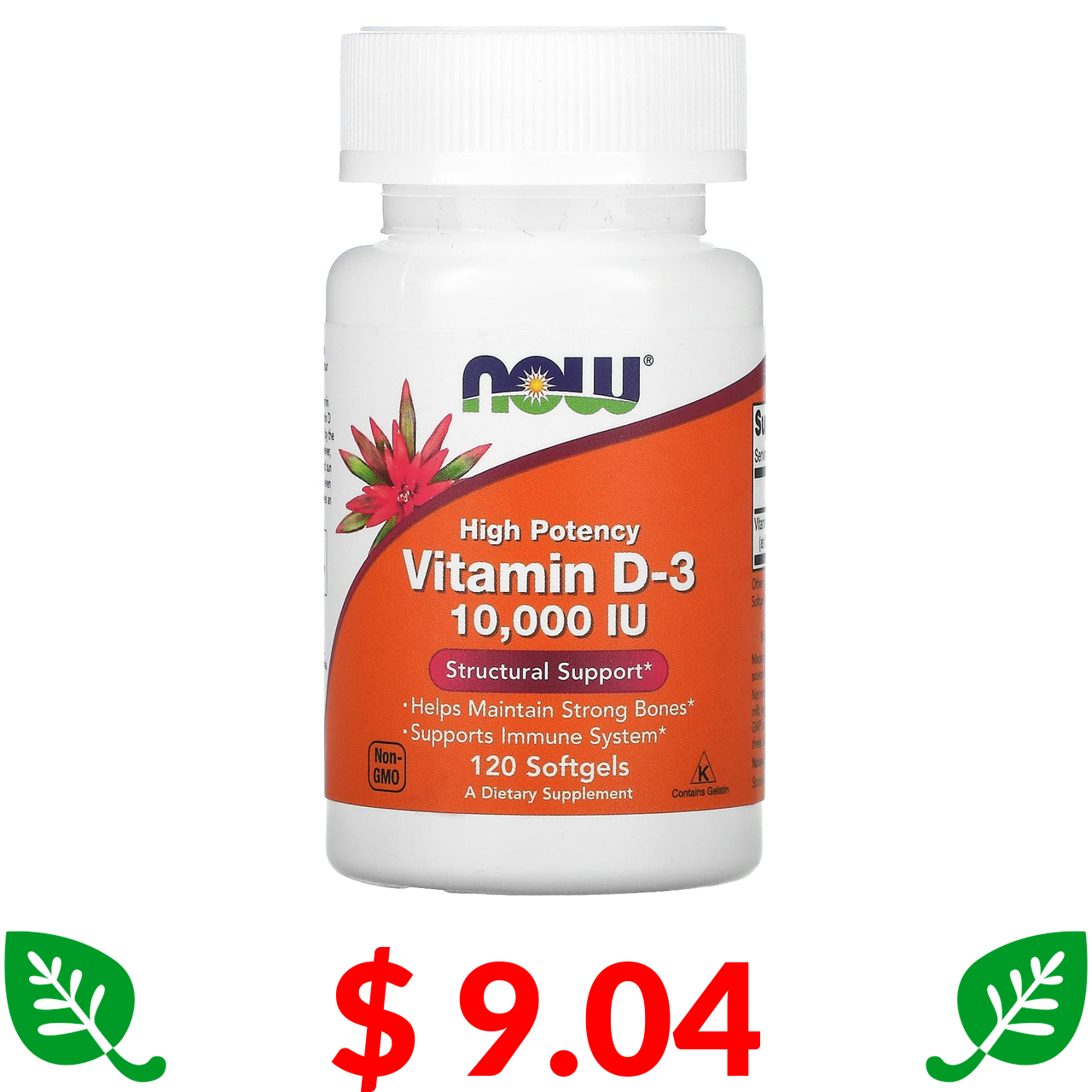 $ 9.04 Now Foods, високоефективний вітамін D3, 250 мкг (10 000 МО), 120 капсул