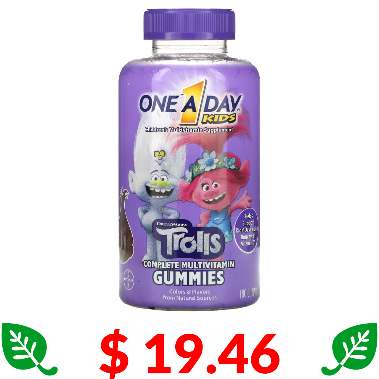 $ 19.46 One-A-Day, комплекс мультивітамінів для дітей, у формі тролів, 180 жувальних таблеток