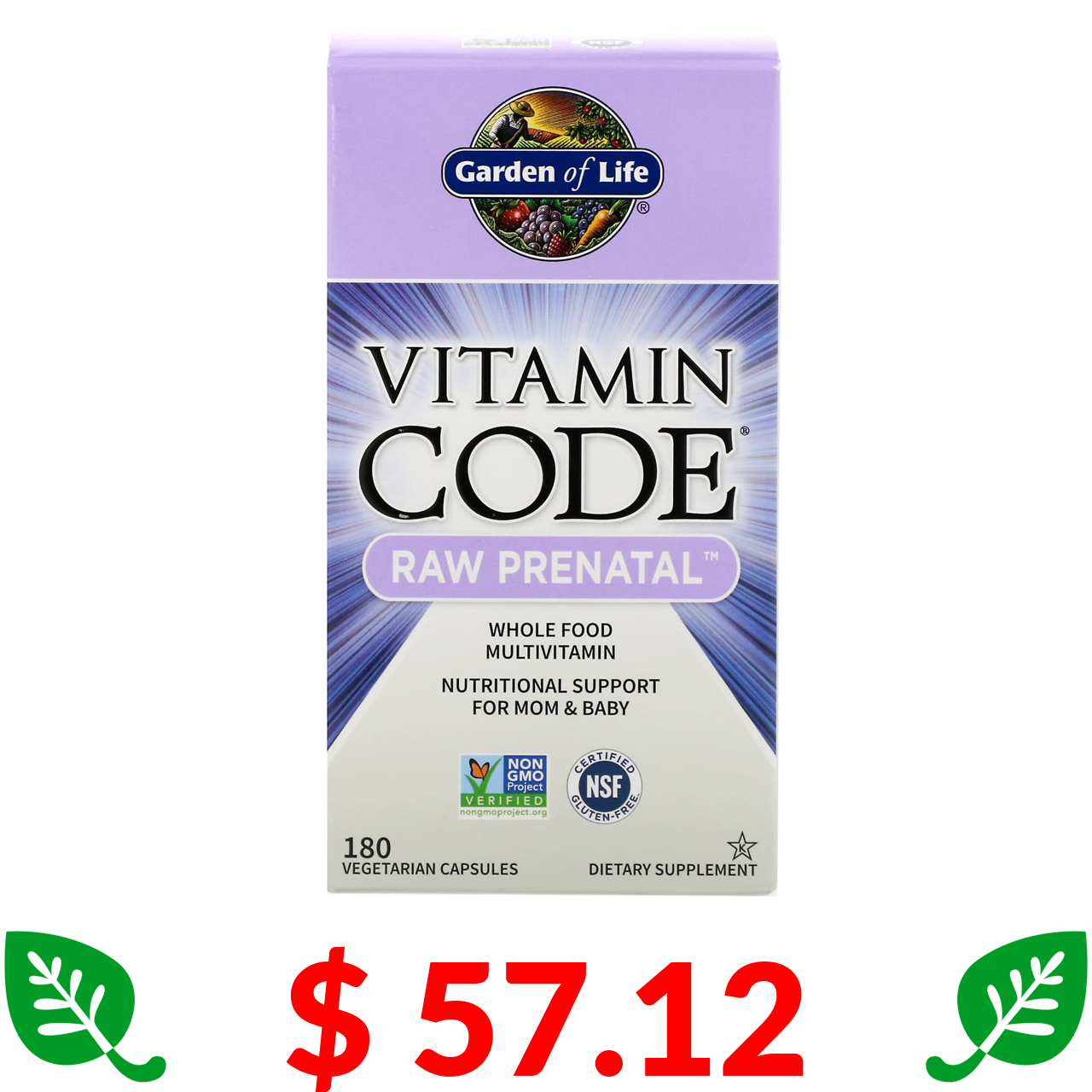 $ 57.12 Garden of Life, Vitamin Code, RAW prenatal, 180 вегетаріанських капсул