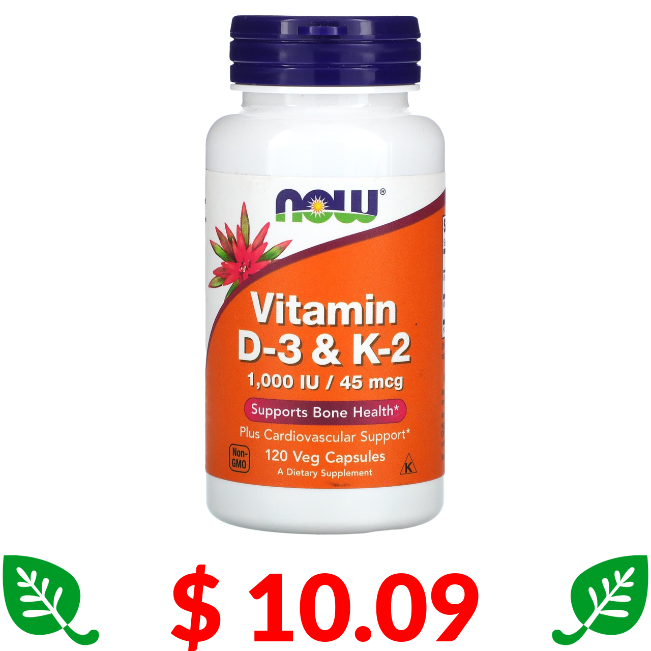 $ 10.09 Now Foods, вітаміни D3 та K2, 120 рослинних капсул