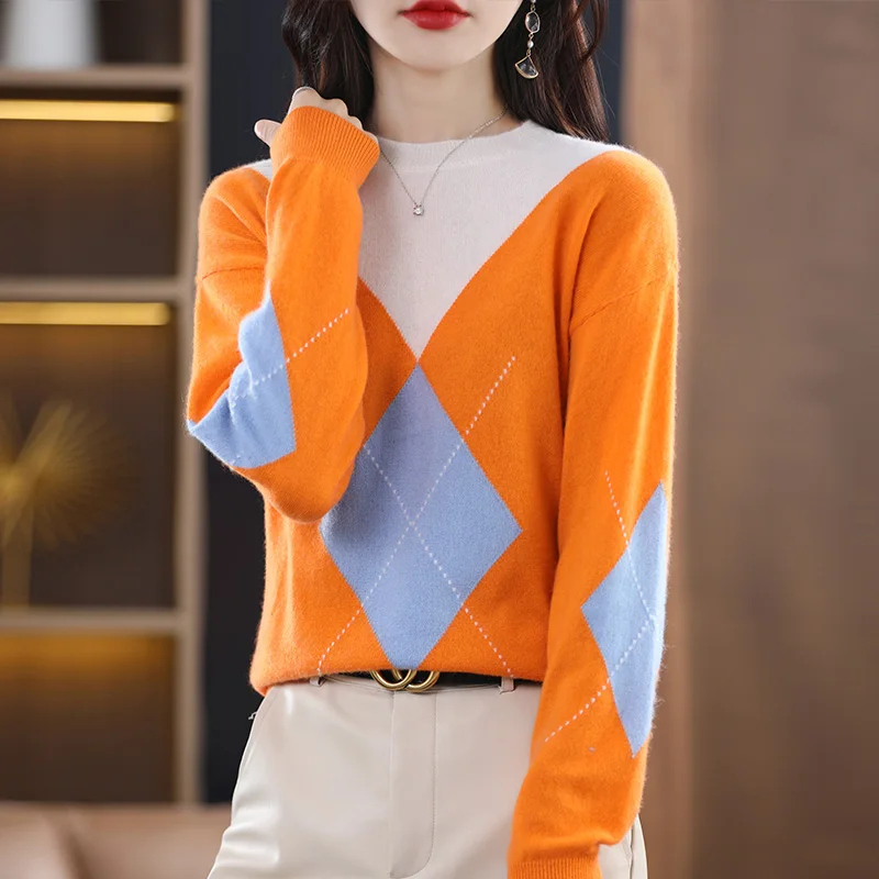 «2 Autumn Winter New Cashmere Sweater Female Round Neck Diamond Bump Color Loose Korean Version Pullover Pure Wool Sweater» по лучшей цене на рынке! Всего за 42$ (3990рублей)