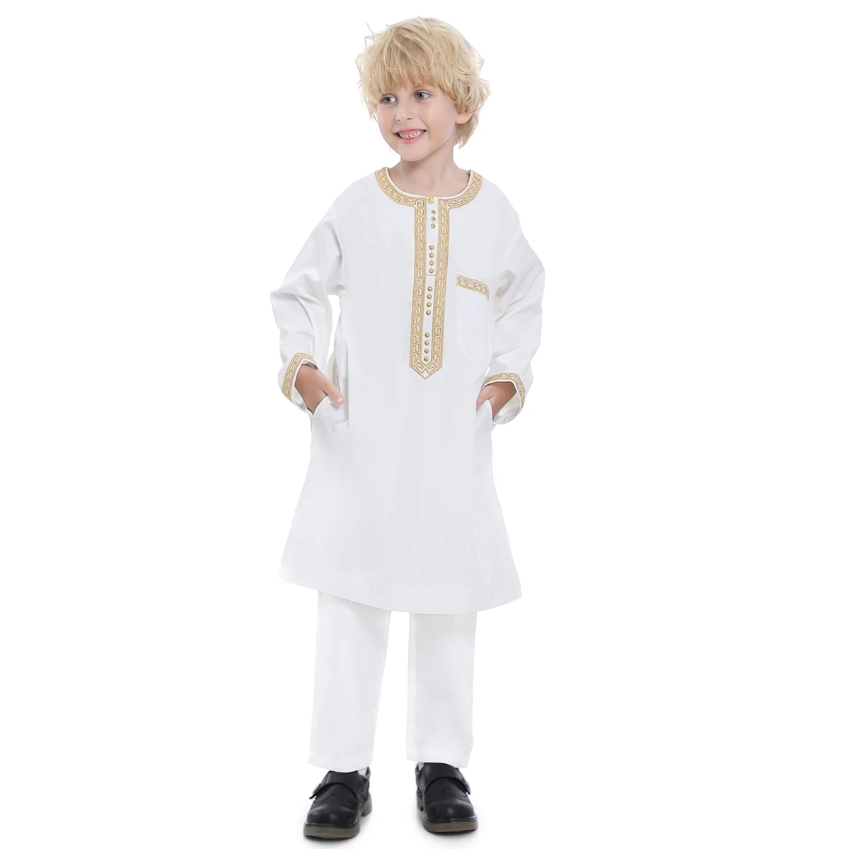 jwwKNLnVxHere you can buy 2 PCS Muslim Boys Round Neck Solid Color Embroider Button Long Sleeves Tops Robe Arab Big Kids Pure Long Loose Pants Set with free delivery to your post office.